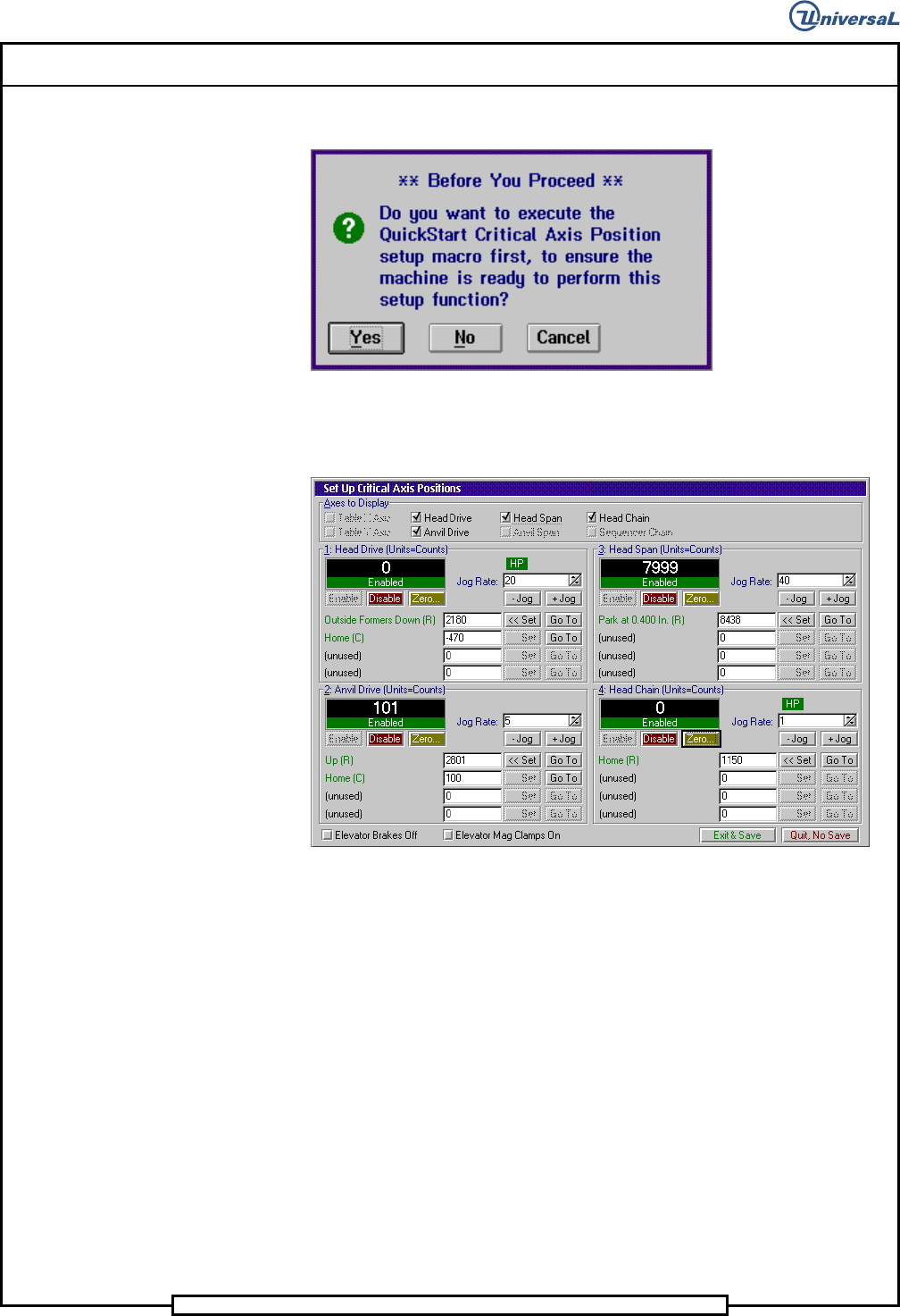 7. In the Set Up Critical Axis Positions screen, click on the Head Chain
