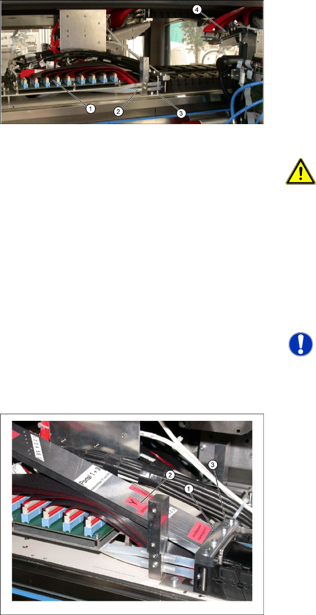 Service-Arbeiten D3 Portal SIPLACE D-Serie Serviceanleitung (internal version) 57 Ausbau Legende 1. Schlepp-Interface Portal 2. Pneumatik für Vakuumpumpe (Option) 3. Halteblock für Kabelschlepp 4. Portal-Interface X Löse…