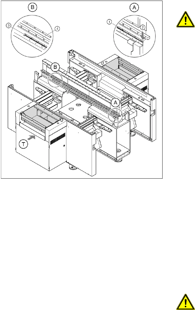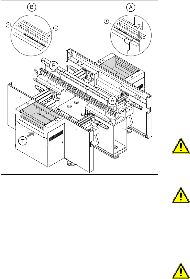 Service-Arbeiten D4 Portal SIPLACE D-Serie Serviceanleitung (internal version) 81 Maßstab für Y-Achse montieren X Verschieben Sie beide Portale nach rechts. VORSICHT: Verdrehen oder verkr atzen Sie den Inkrementalmaßstab…