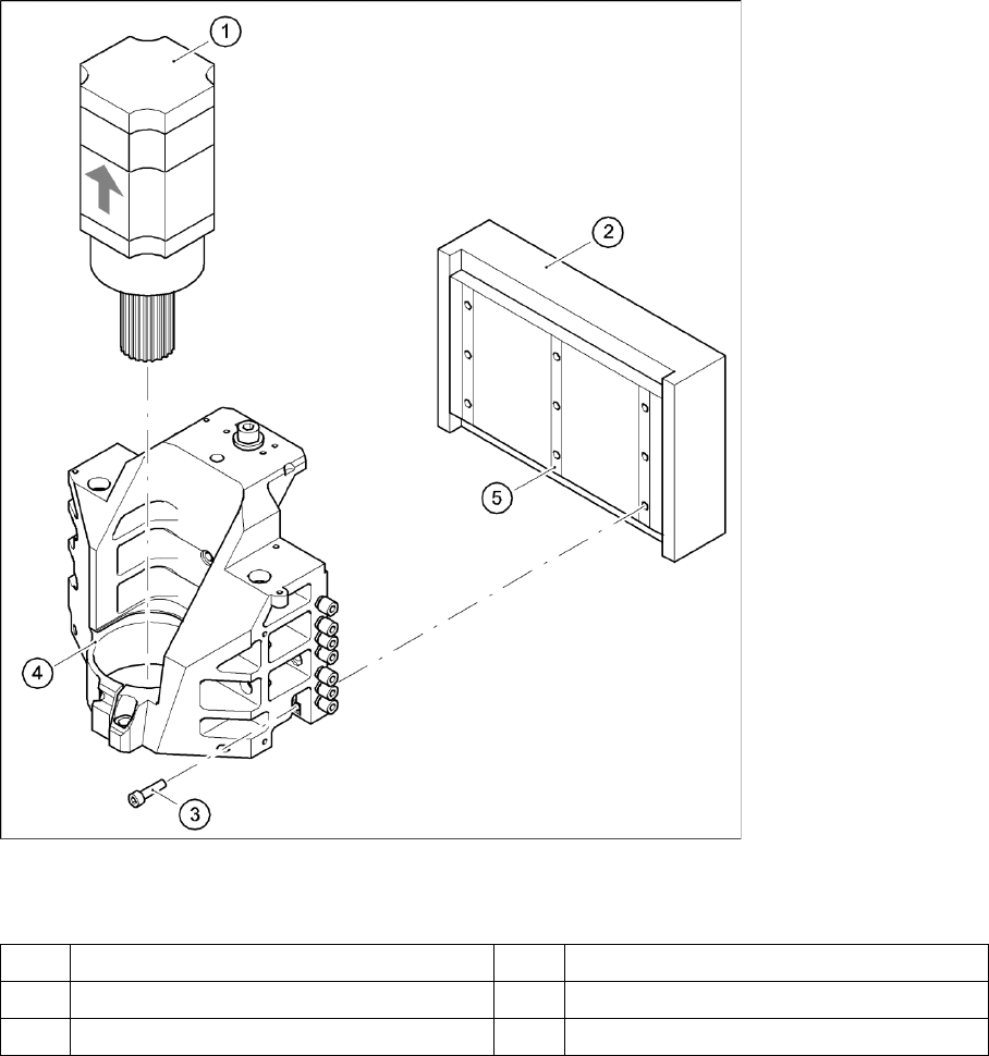 X Lösen Sie die neun Innensechskantschrauben M5x20 (3) und nehmen Sie das Primärteil (2) ab.