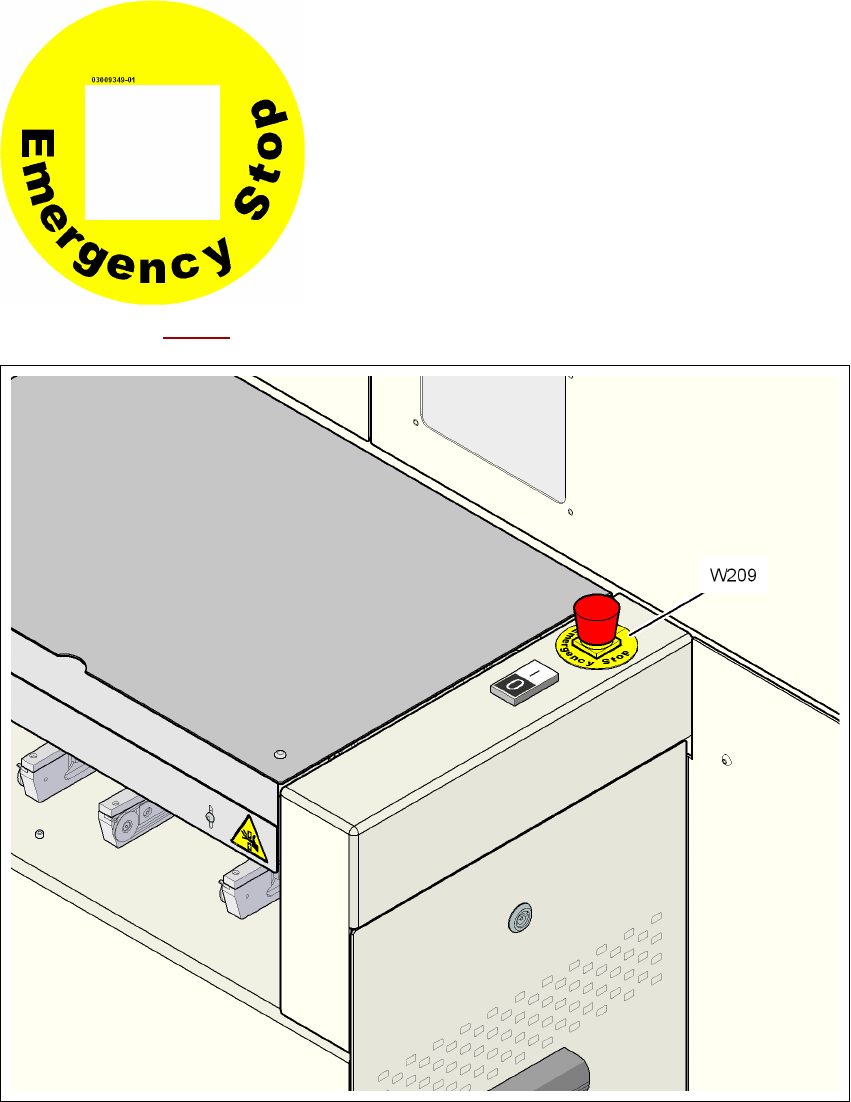 Fig. 2.2 - 11 Warning label W209 on the EMERGENCY STOP buttons