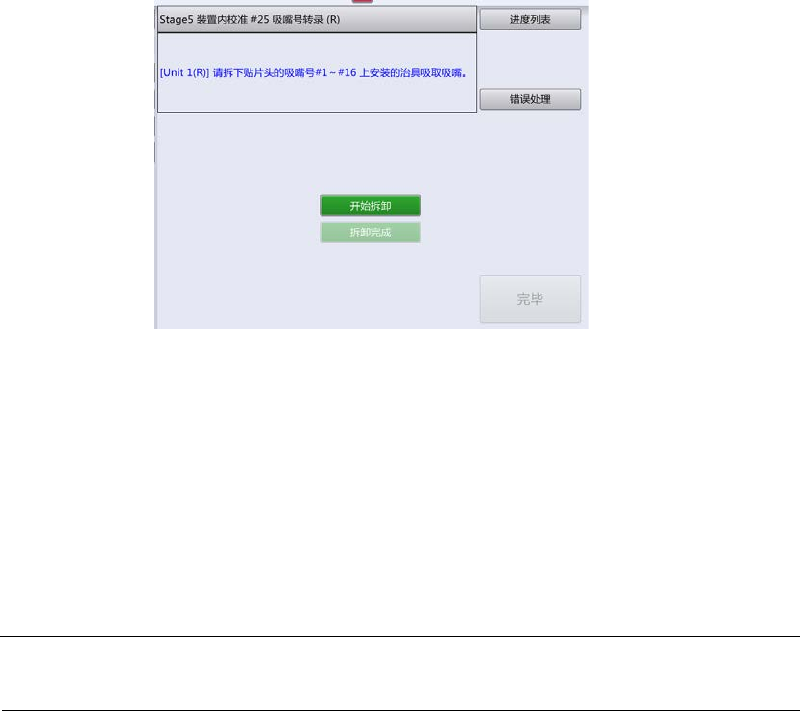 保存校准结果,显示治具吸取吸嘴的拆卸画面。