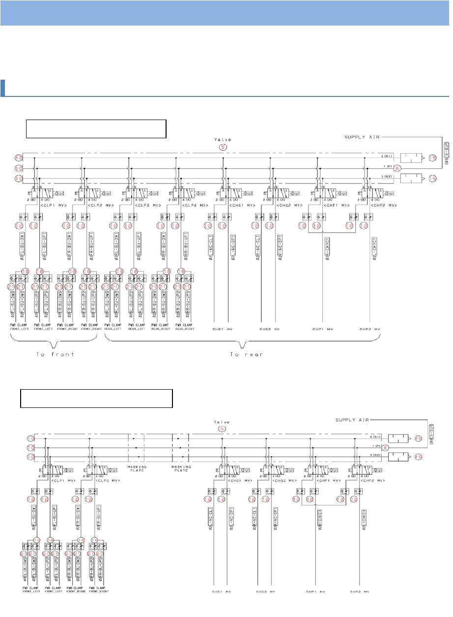 第 6 章 配管图 6- 2. 传送带周围 空气配管图 7 6-2- 2. 电磁阀(机械止动器) RX - 7R CO NVEYOR SINGLE RX - 7R CO NVEYOR DUA L