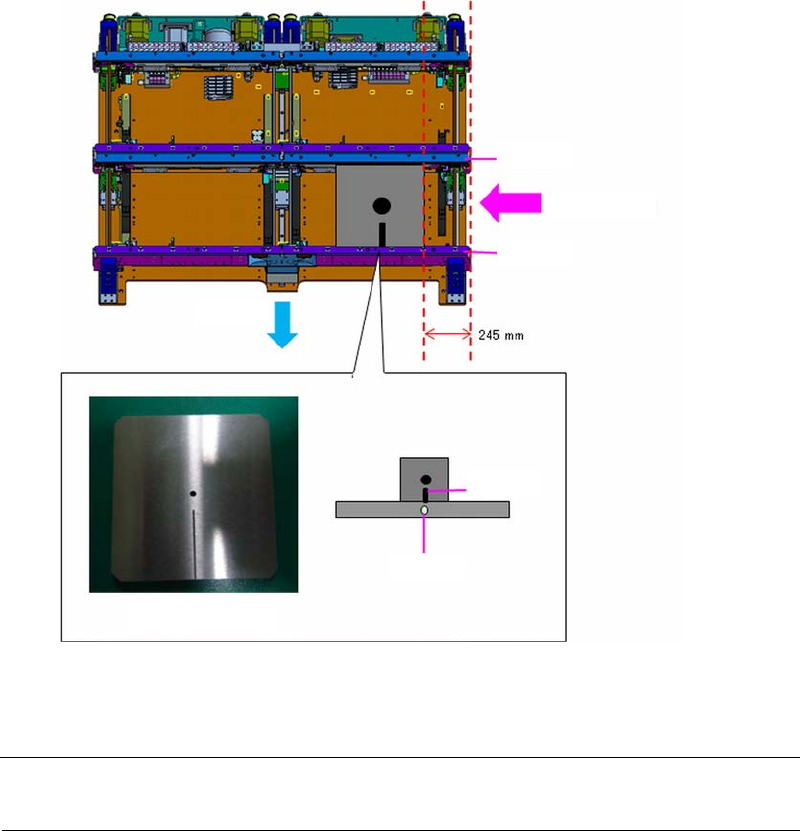 打开前面护罩,在右侧装置的前侧通道上,把基板翘曲检测传感器转写调整治具板安