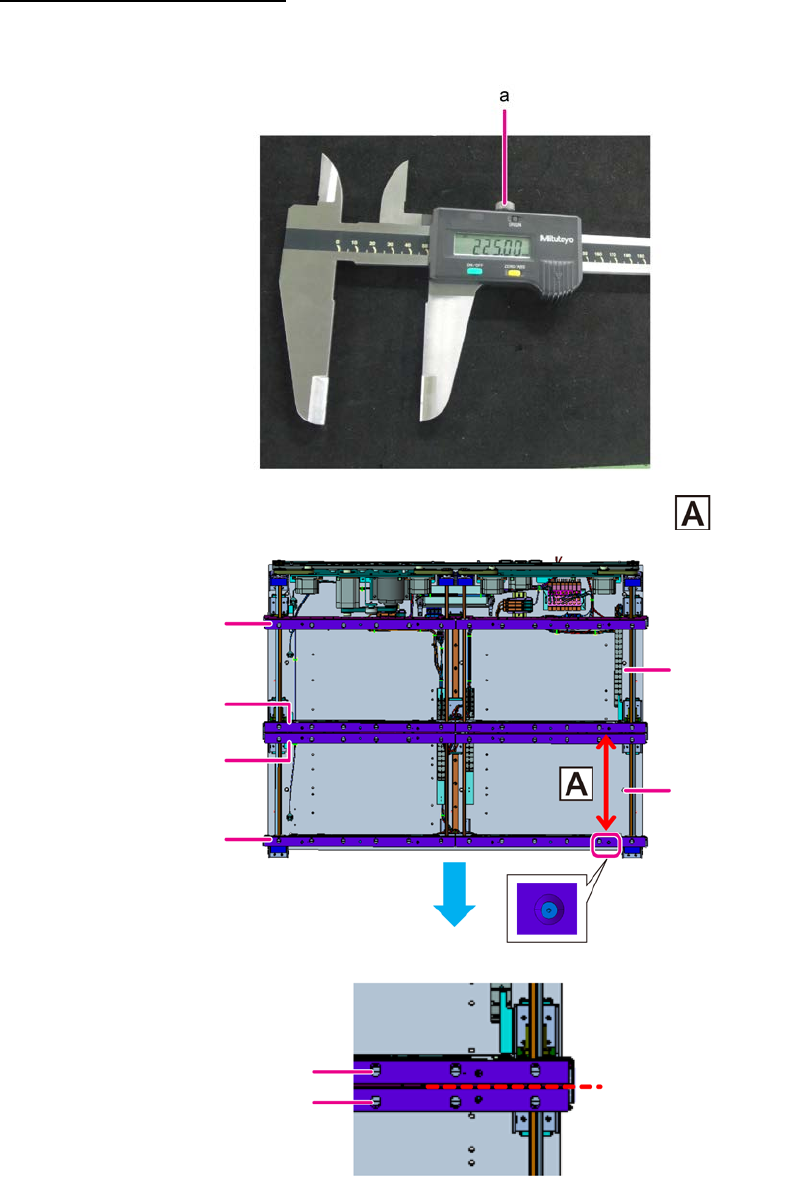 第 2 章 操作顺序书 2- 4. 维护 163 将数显游标卡尺放在第一轨道和第二轨道之 和 的位置。 7 参阅 操作顺序 4 的图。 慢慢地旋转轴 (e) ,直至轨道分别碰到数显游标卡尺之 和 的侧面。 8 顺时针方向旋转 :传送宽度收缩 逆时针方向旋转 :传送宽度放宽 确定好轨道宽度后,取下数显游标卡尺,旋紧 CP 螺栓 (d) 。 9 紧固扭矩: 1 N·m ±0.05 N· m 松开数显游标卡尺的固定,将游标卡尺放在操作顺序 2…