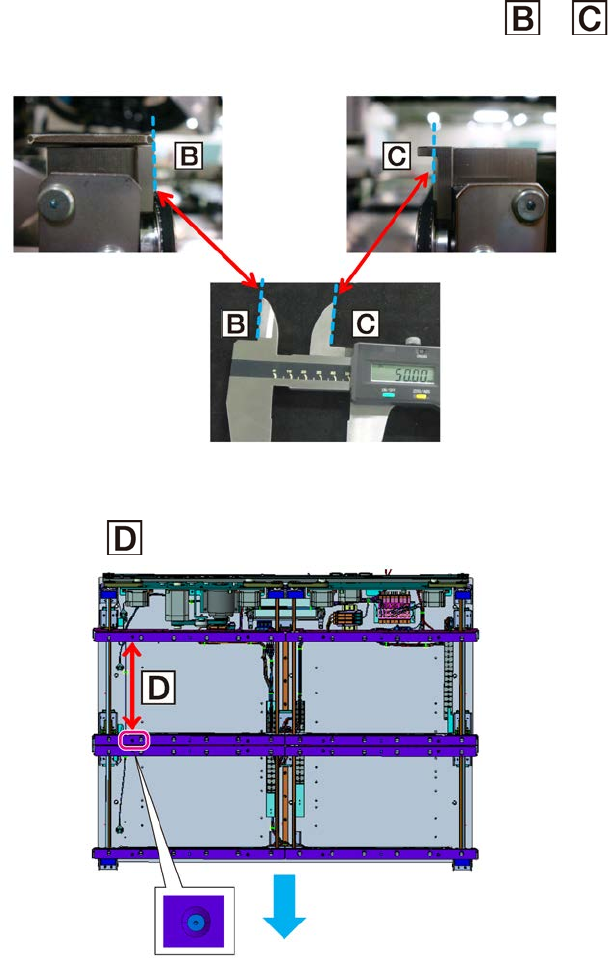 同样地在 ~ 的位置上放置数显游标卡尺,确认轨道宽度为