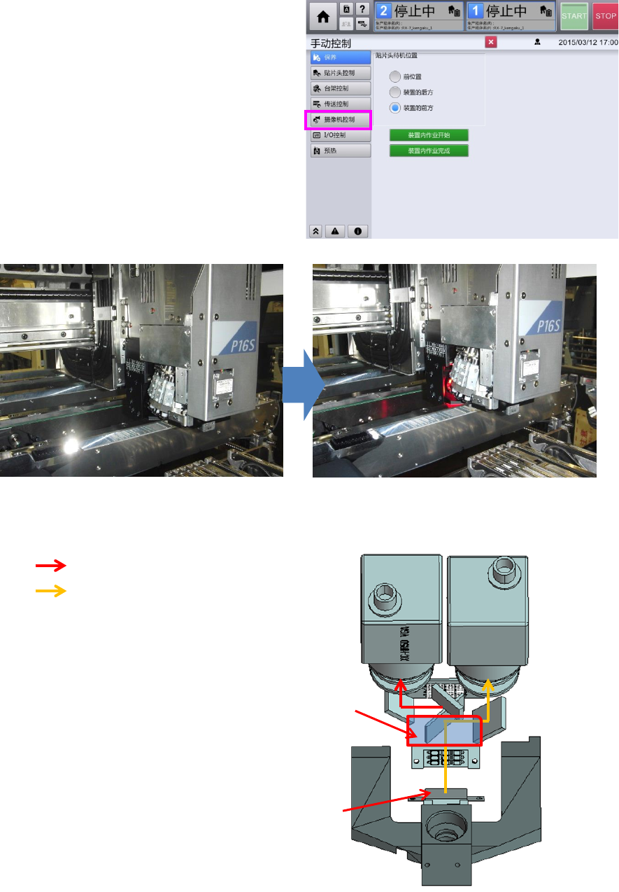第 2 章 操作顺序书 2- 4. 维护 206 11 -5 .请按 “ 摄像机控制 ” 。 照明熄灯 照明亮灯 11 -6 .反射镜配置图及 反射路线 吸取检查摄像机 元件摄像机 \\ 保护玻璃 镜部