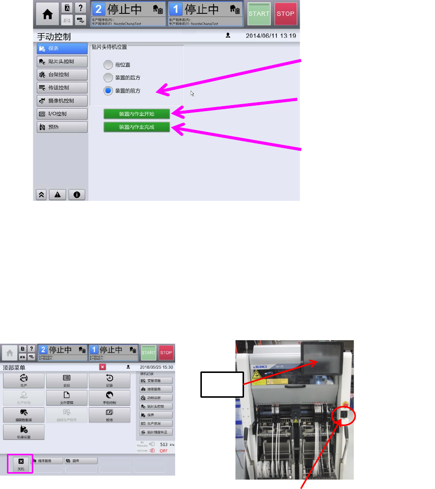 装置的画面消失后,把前侧右边的断路器置于