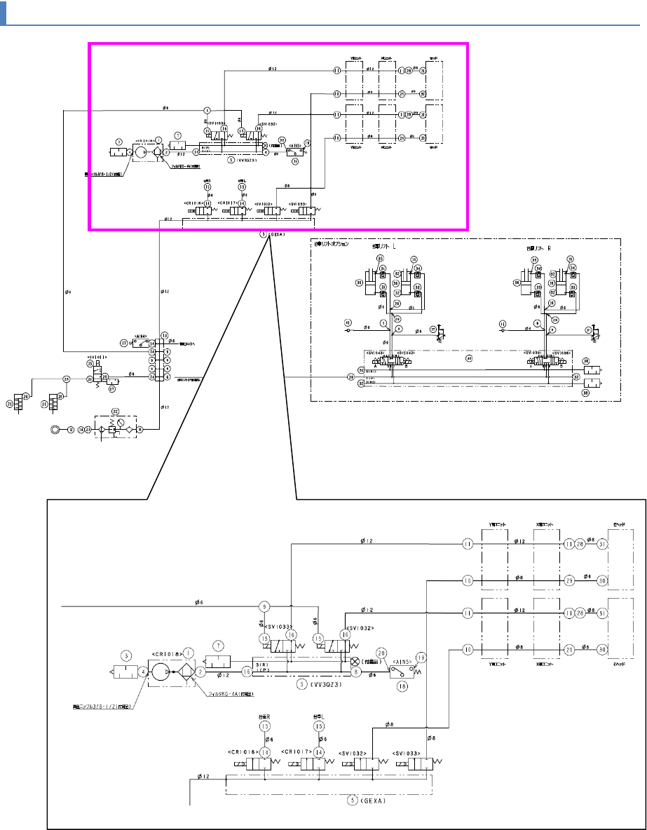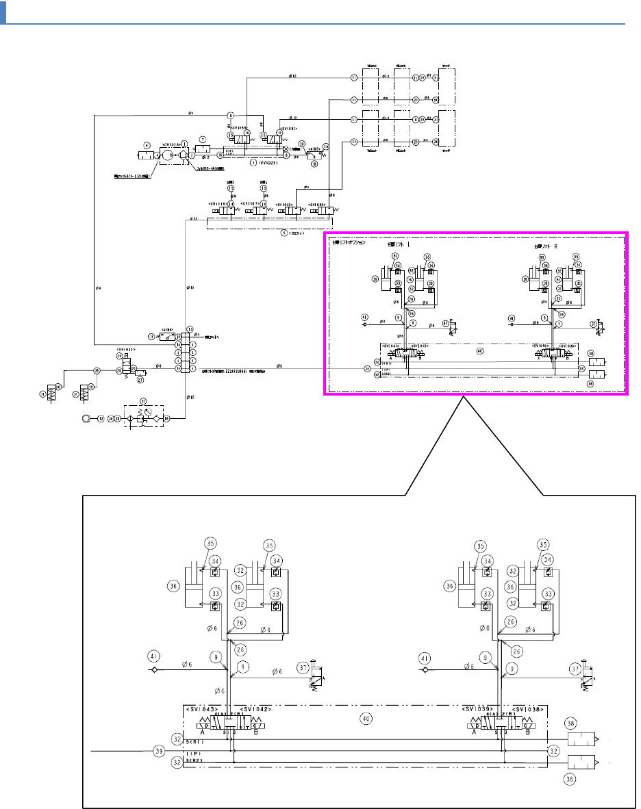第 6 章 配管图 6- 1. 总体配管图 4 6-1- 2. 更换台车升降机周围空 气配管图 台车升降机选项 台车升降机 L 台车升降机 R