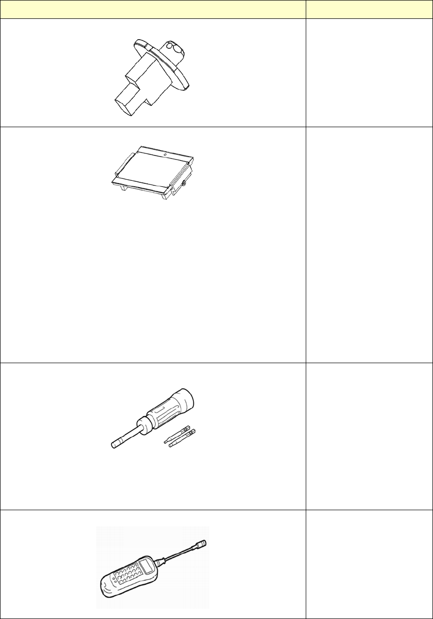 第 2 章 操作顺序书 2- 1. 治具列表 4 治具名称/ 图编号 用途 TOOL, X - AXIS T ENSION AD JUSTMENT / EZ 45339 7801 (1) • 调整 X 轴皮带张力 STANDARD, NOZZLE / EZ 453431601 (1) • 测定 Z 轴的原点 • 确定吸取检查摄 像机的 像素率 • 确定贴装行程 GLASS C HIP PIC K UP NO ZZLE / EZ 45 3…