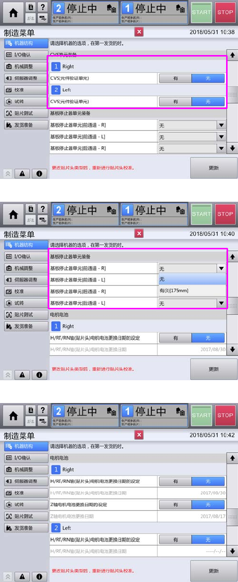 <基板停止器的设置画面>