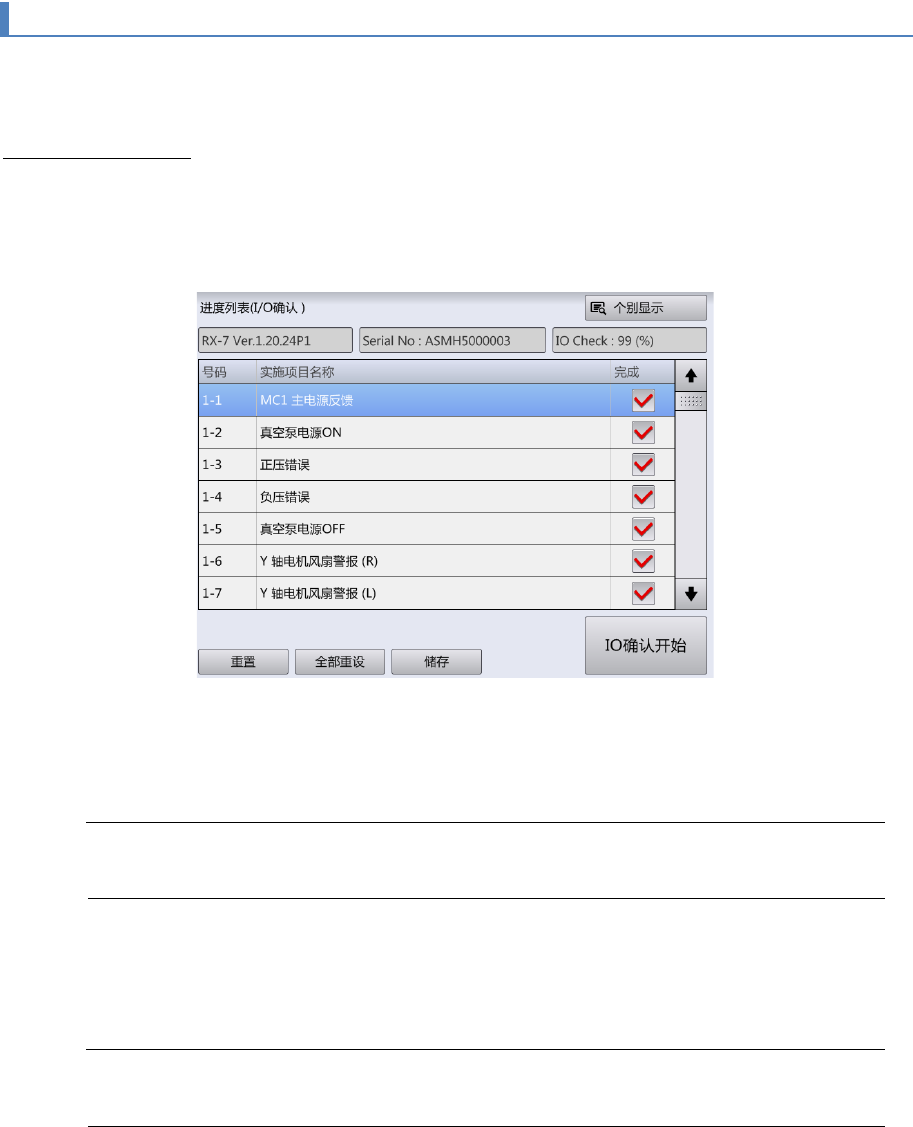 之前的检测完成后,自动显示[进度列表]画面,下一个[机械调整]菜单可以开始