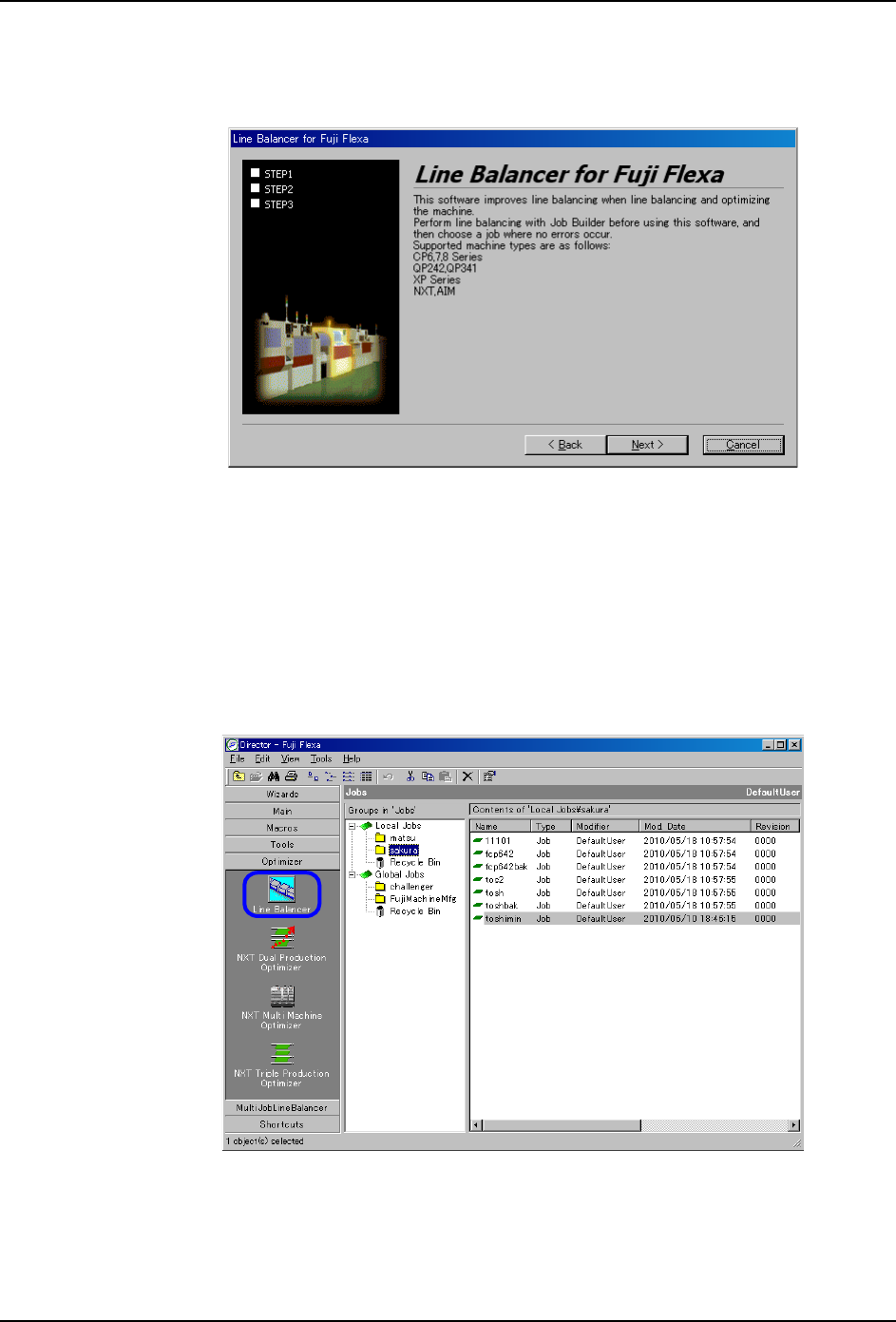 从 Job 编制器的 [ 工具 ] 菜单中选择 [LineBalancer(with Optimization)] 也可以显示