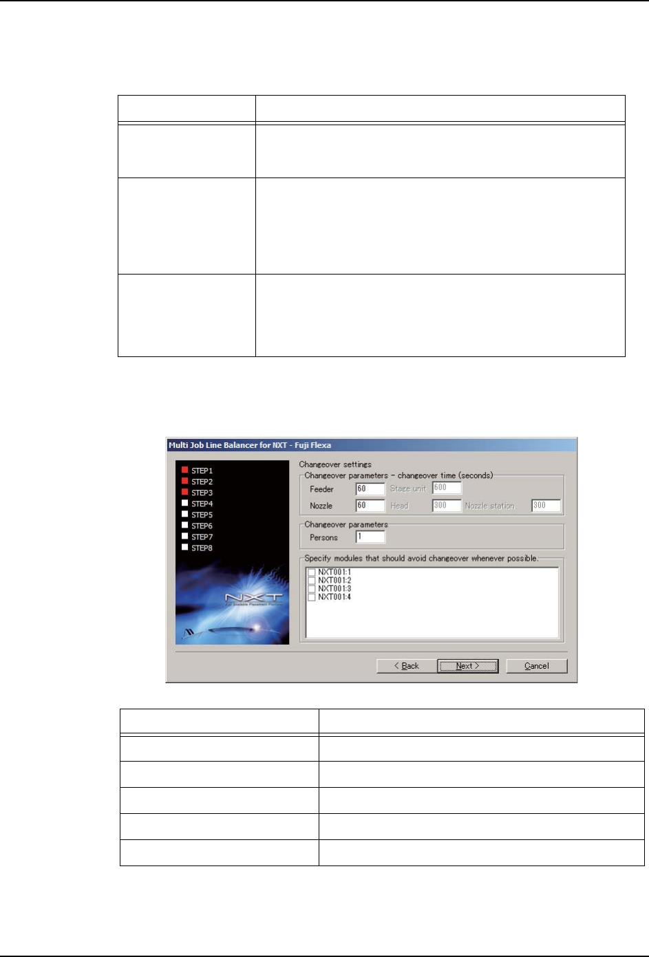 2. Job 编制器 PRG-NXTS-001S0 134 NXT 系列 编程手册 18.请在 [ Ch angeover paramete rs ] Groupbox 中输 入参数值 。 19.在 [Specify modules that should avoid changeover whenever possible] 框中选 择合 适的模组。该选项只在已经指定了 以下两项设置的情况下启用。 ·Feeder allocation…