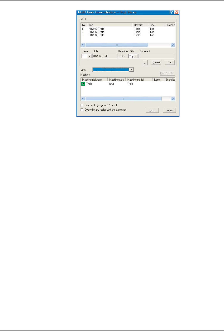 备注 )当前打开的 Job 只能传输到 Job 中使用的生产线上。