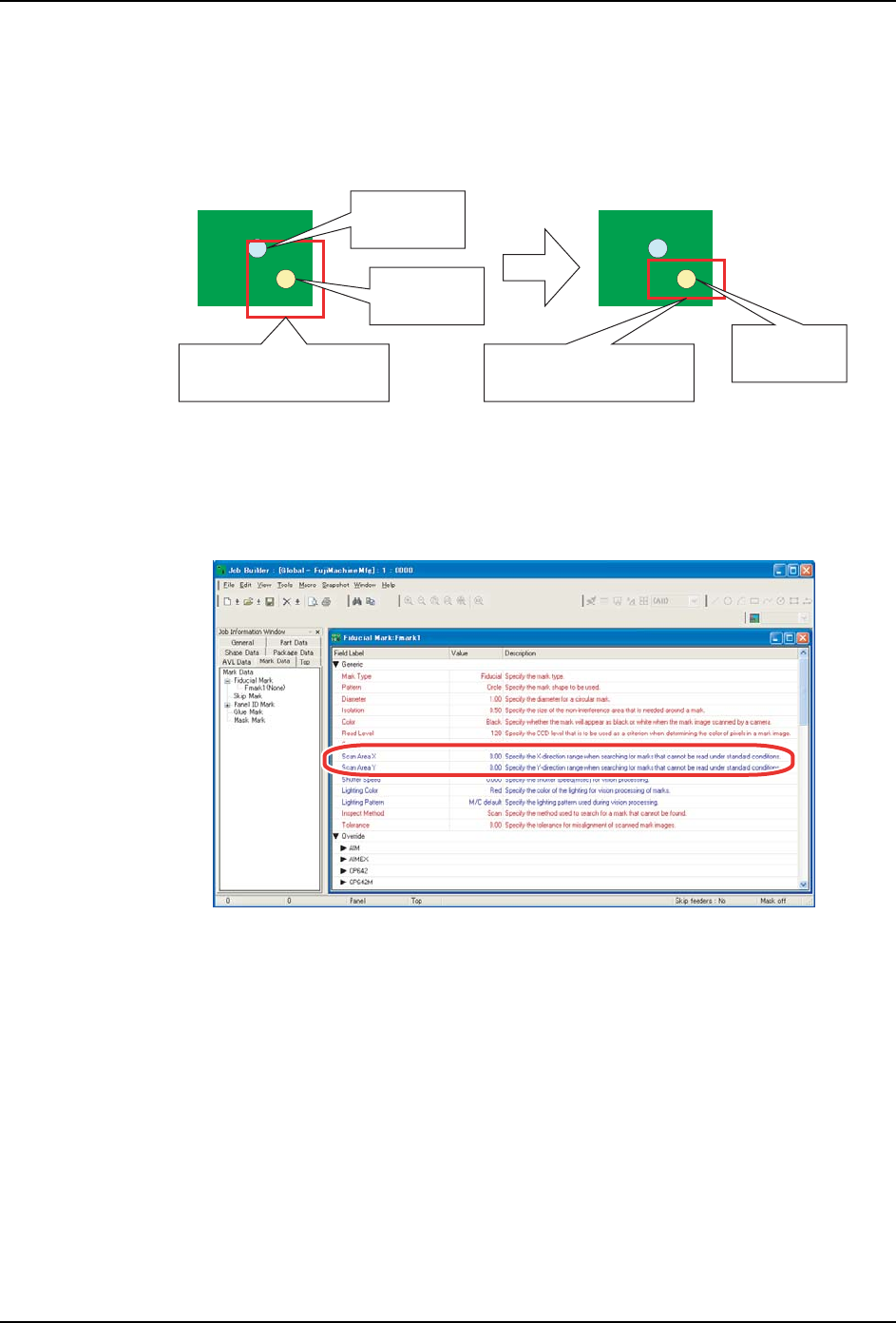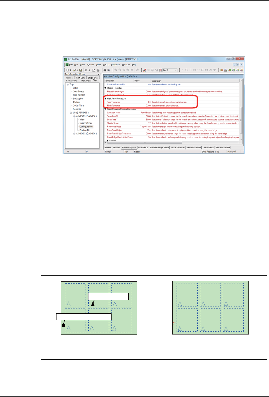 PRG-NXTS-001S0 2. Job 编制器 NXT 系列 编程手册 63 设定 MEdi t 1. 请 在 MEdit 打 开 Job。 2. 请 点击 Sequence 选择 Mark Se quence。 3. 请 点击 MEdit 右下面 Mark,进 行以下设定。 设定定位点位置及定位点之间的 距离 设定读取定位点位置的公差范围 及定位点之间的距离的公差值,可 以防止错误识别。 请在 Prope rty 的列表中 选择 …