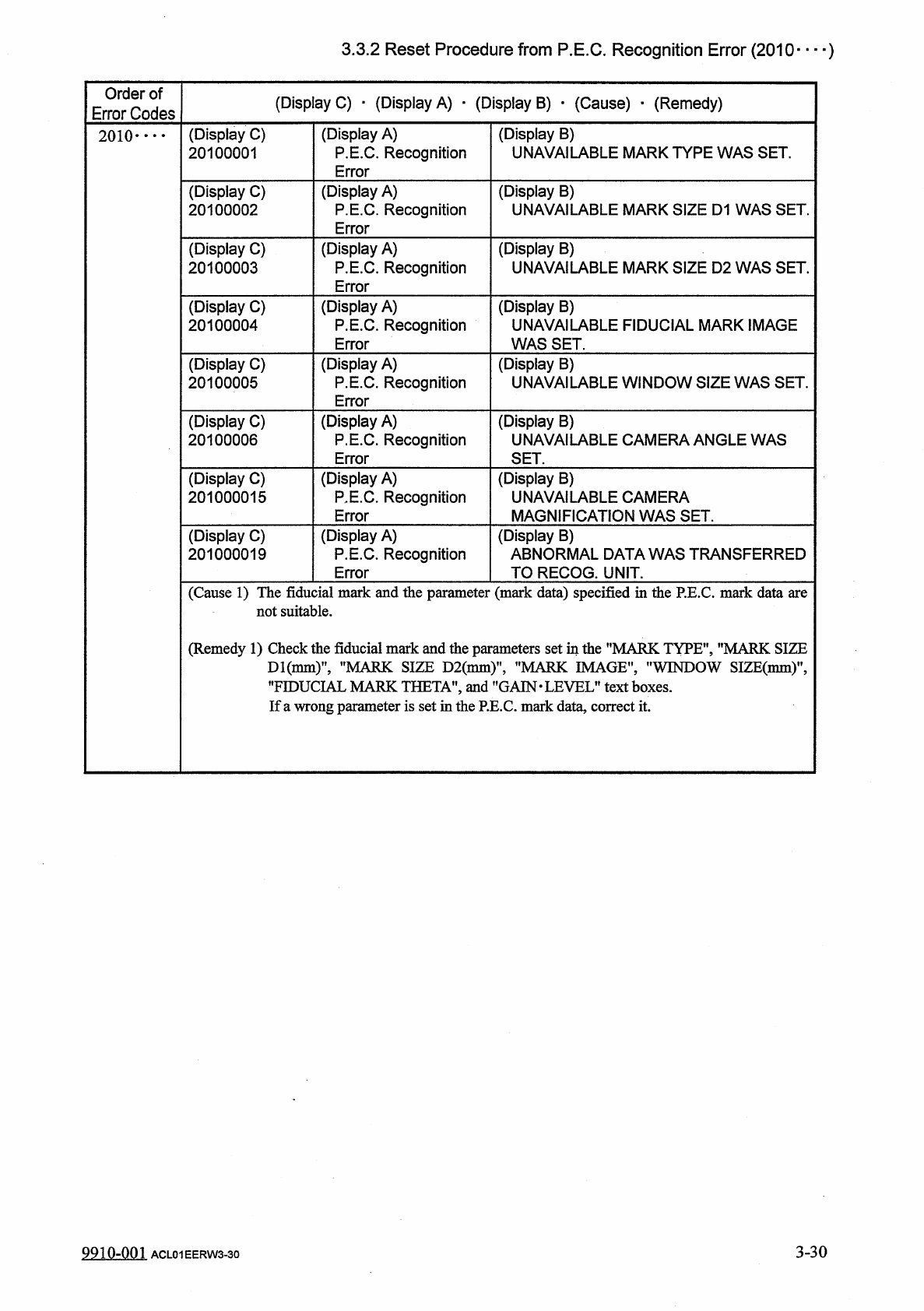 3.3 . 2 Reset Procedure from P . E . C . Recognition Error 3.3 . 2 Reset Procedure from P . E . C . Recognition Error Shown below are the contents of the error which is generated in P . E . C . recognition processing . f…