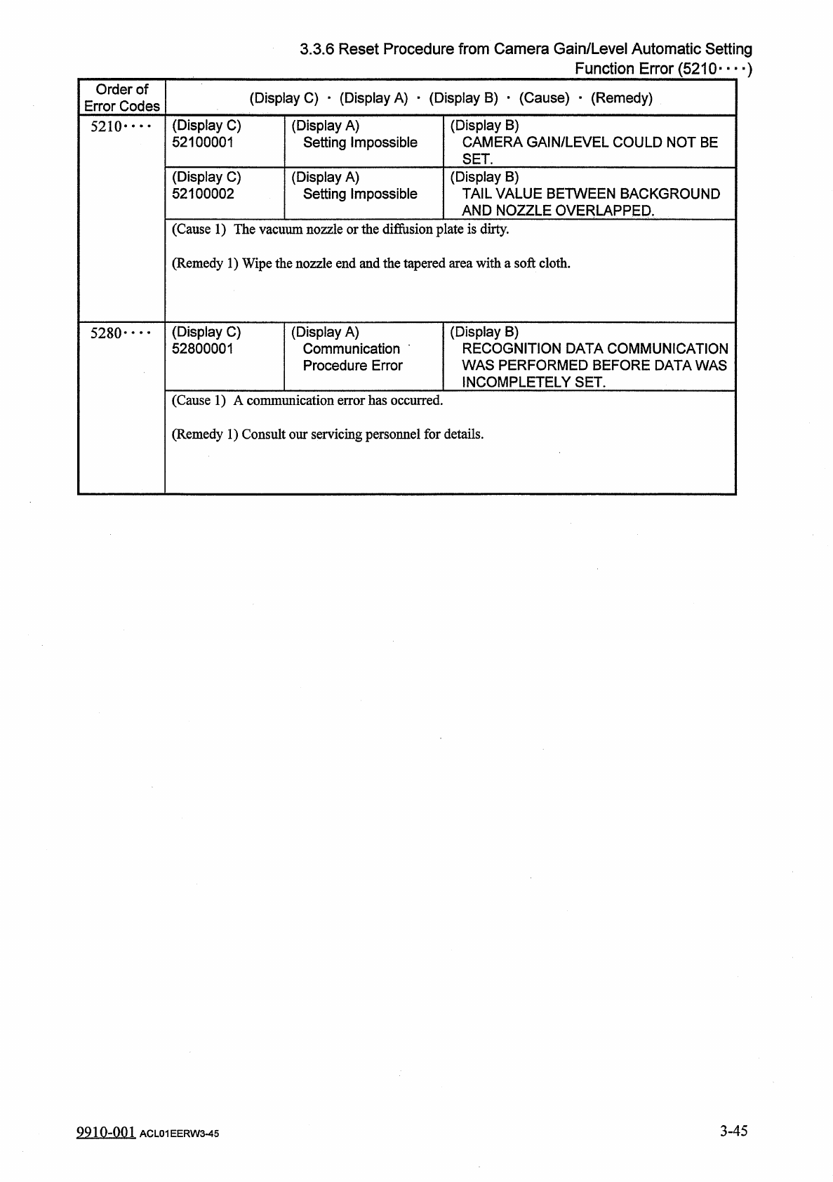 3.3 . 6 Reset Procedure from Camera Gain / Level Automatic Setting Function Error 3.3 . 6 Reset Procedure from Camera Gain / Level Automatic Setting Function Error Shown below are the contents of the error which is gener…