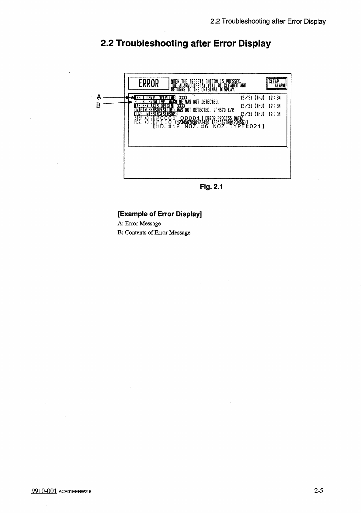 2.2 Troubleshooting after Error Display 2.2 Troubleshooting after Error Display 1 麵 l P CLEAR AND ALARM A 12 / 31 ( THU ) 12 : 34 12 / 31 ( THU ) 12 : 34 趣鴨 _ : 12 : 34 II : 謂醐 ⑽ » 1 说 III ! I 3 s NOT DETECTED . DETECT…