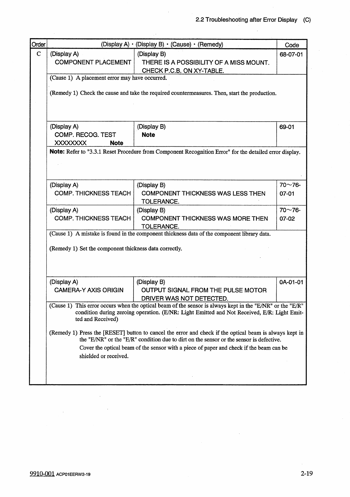 2.2 Troubleshooting after Error Display ( C ) ( Display A ) • ( Display B ) • ( Cause ) • ( Remedy ) Order Code ( Display A ) COMP . THICKNESS C ( Display B ) " STEP " AND " LANE " ARE DISPLAYED . 67 …
