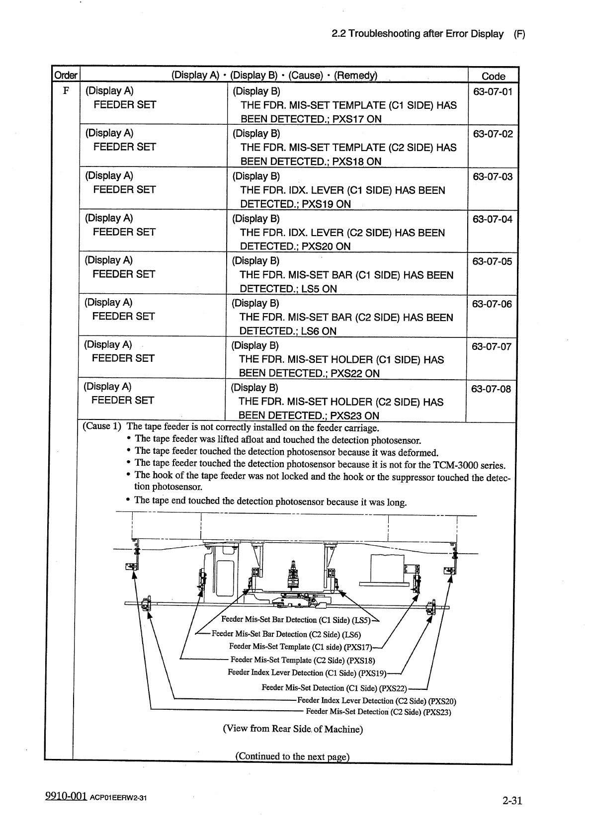 2.2 Troubleshooting after Error Display ( F ) ( Display A ) • ( Display B ) • ( Cause ) • ( Remedy ) Order Code 63 - 06 - 01 F ( Display A ) FDR . CRG . AXIS MOTOR ( Display B ) FDR . CRG . AXIS MOTOR # 1 & # 2 HAVE …