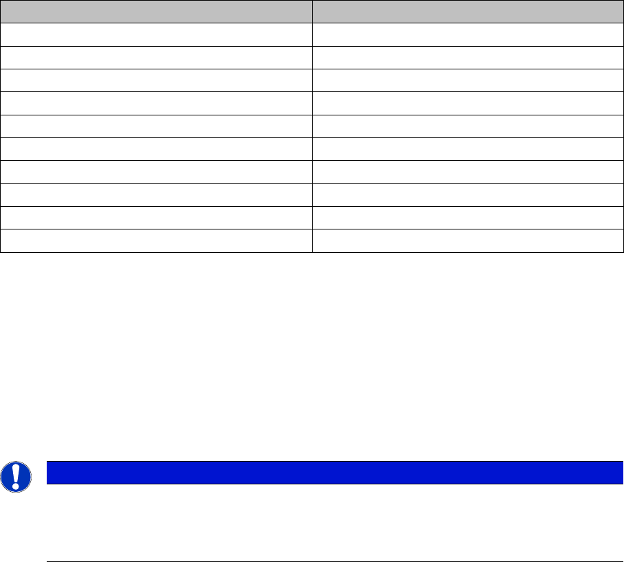 Technical data for external power supply: