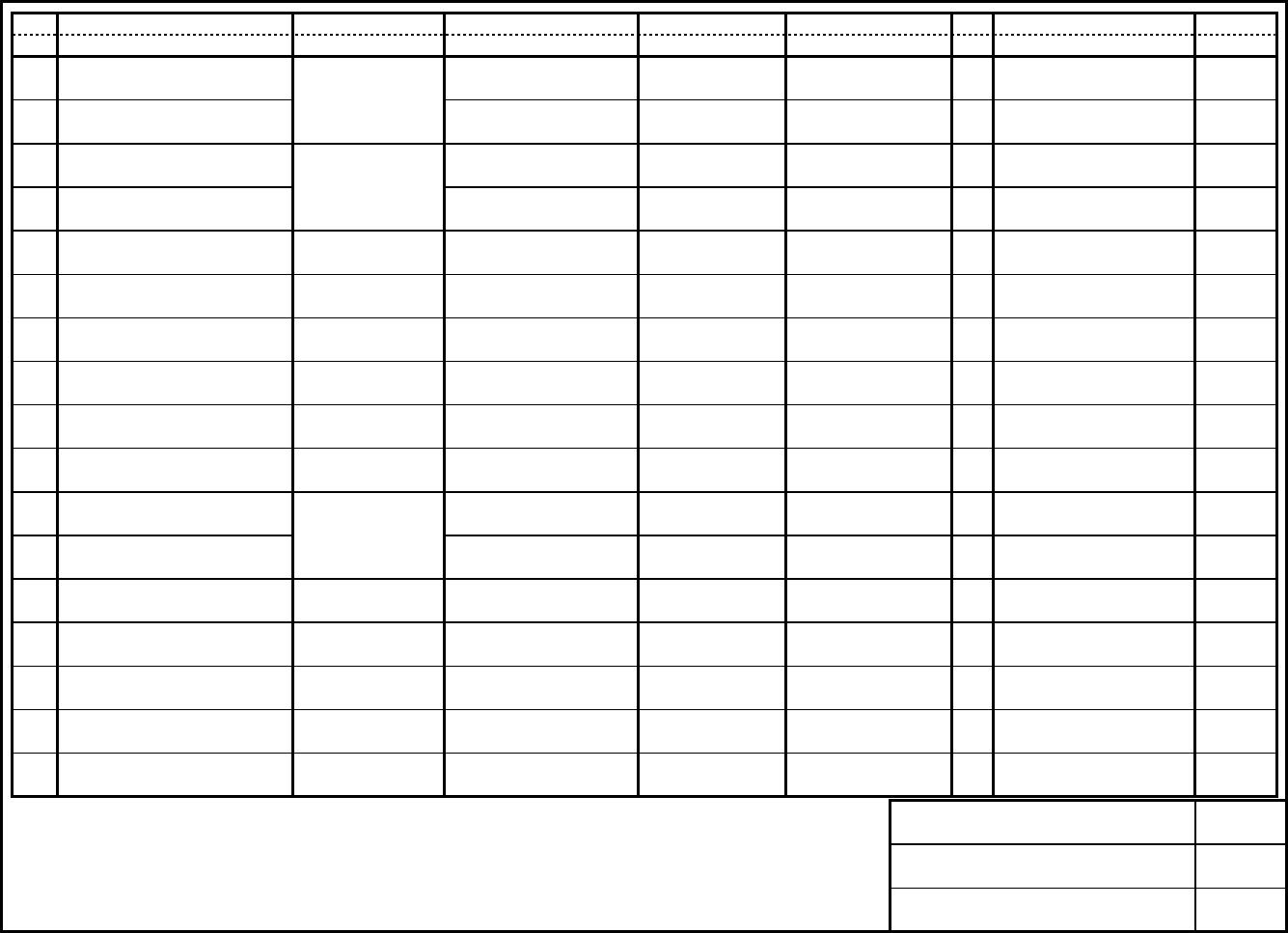 NO. NAME SYMBOL TYPE MANUFACTURER RATING Q'TY NOTE CODE No.