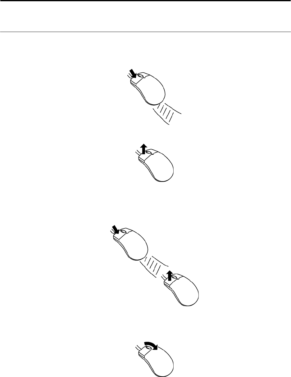 将鼠标光标对准相符部位,按下鼠标按键不放,一直移动到光标的位置。选择菜单等时使用。