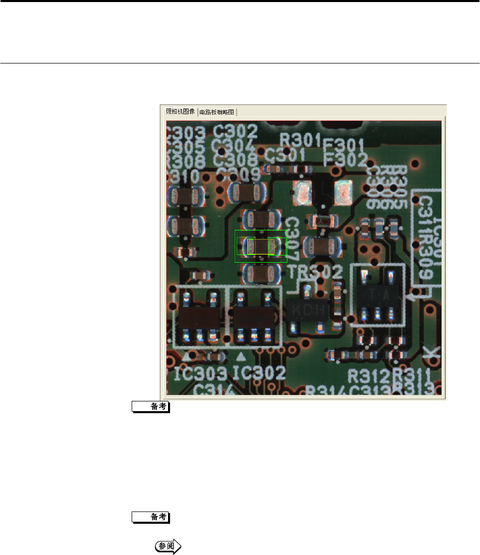 2.1 编程模式的基础知识 2-5 照相机图像 显示照相机图像。 使用照相机图像按钮,切换照相机图像的显示尺寸。 ·全部显示 将正在摄像中的照相机图像全画面按 670×670 像素的大小缩小显示。 ·同倍显示 显示正在摄像中的照相机图像中心部 670×670 像素的画面。 ·2 倍显示 将正在摄像中的照相机图像中心部 335×335 像素的画面按 2 倍放大显 示。 使用显示模式按钮,切换「电路板图像」和「检查图像」。 [检查图像]…