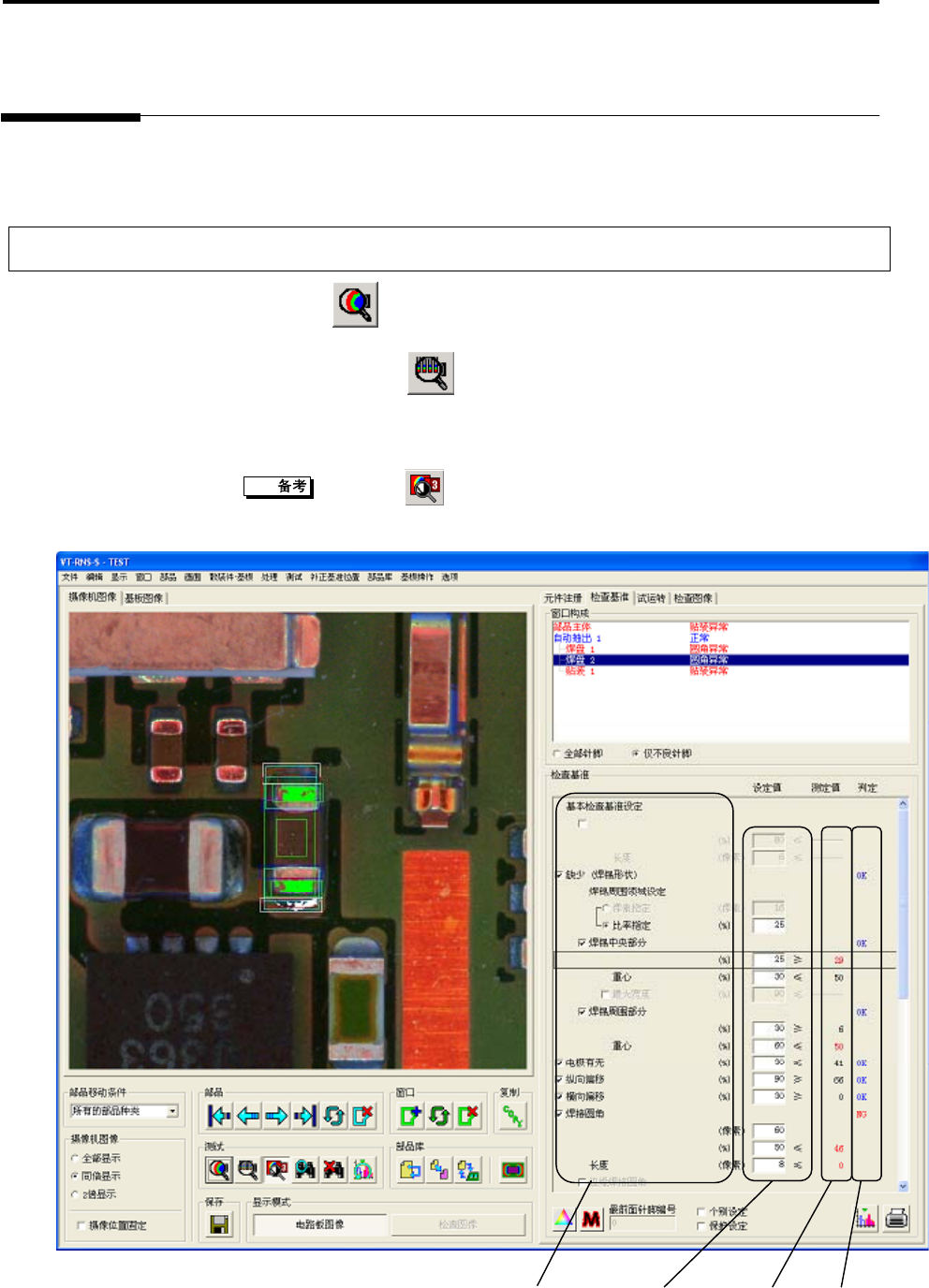 每次单击 图标,在照相机图像上窗口显示和元件测试的结果图像即随