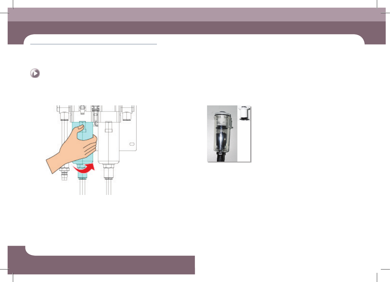 Step 5. 逆 时 针 方 向 转 动 、分 离 容 器 Step 6. 朝顺时针方向旋转Filter装置后更换。