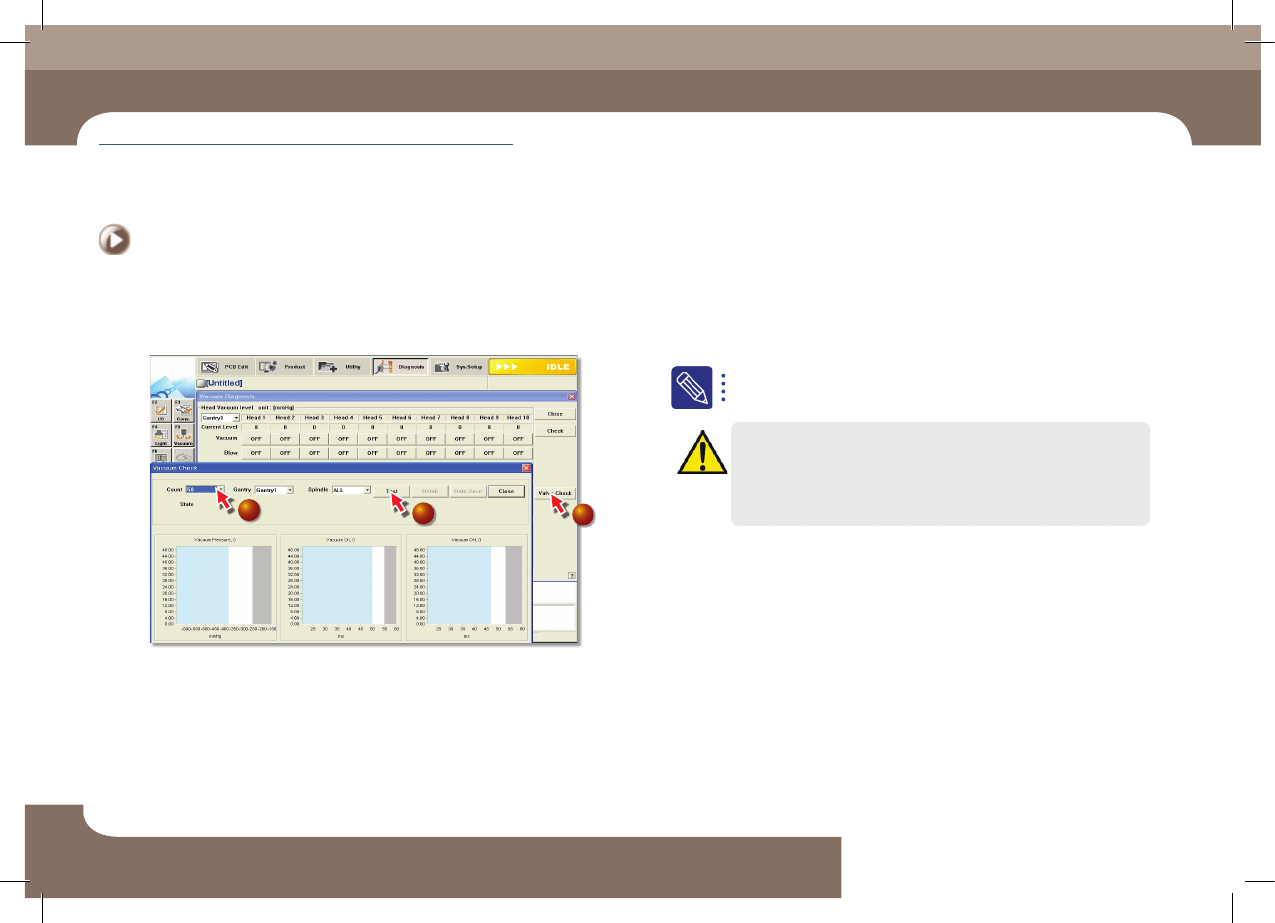 每周检查 Chap ter 4 Fas t Fl ex ib le P la cer SM481 PLUS Maintenance Handbook 4-3 Solenoid Valve的检查 措施 Step 1. 在 ANC 上插入 CN0 40 吸嘴 Step 2. 设 备 起 动 后 、把 ANC 的 CN0 4 0 吸嘴安装到贴装头 Step 3. 选择 MMI 的 "Diagnosis" 菜 单 后 、选 …