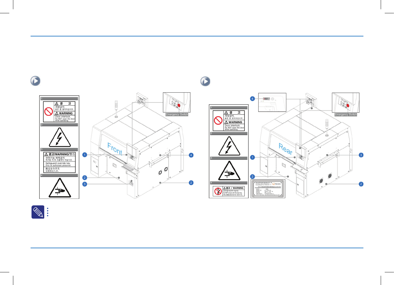 为了安全地使用设备在下列位置粘贴了安全提示标签。