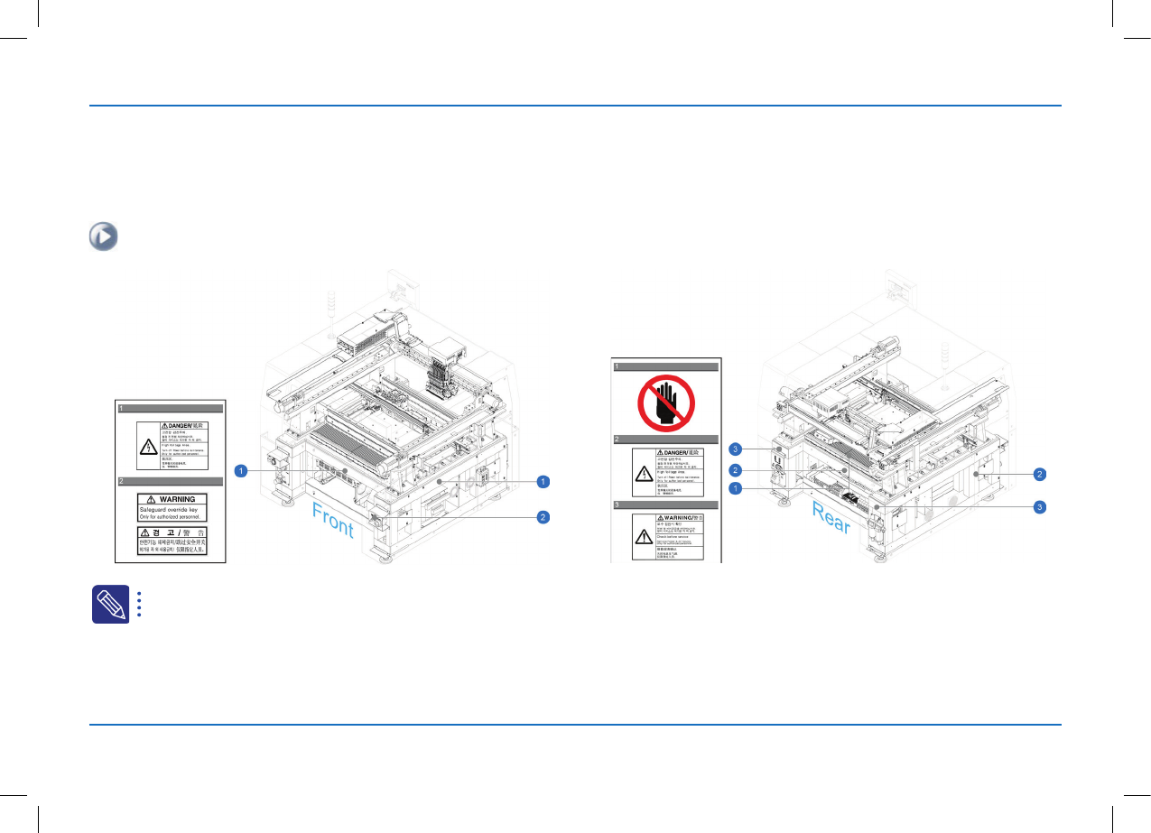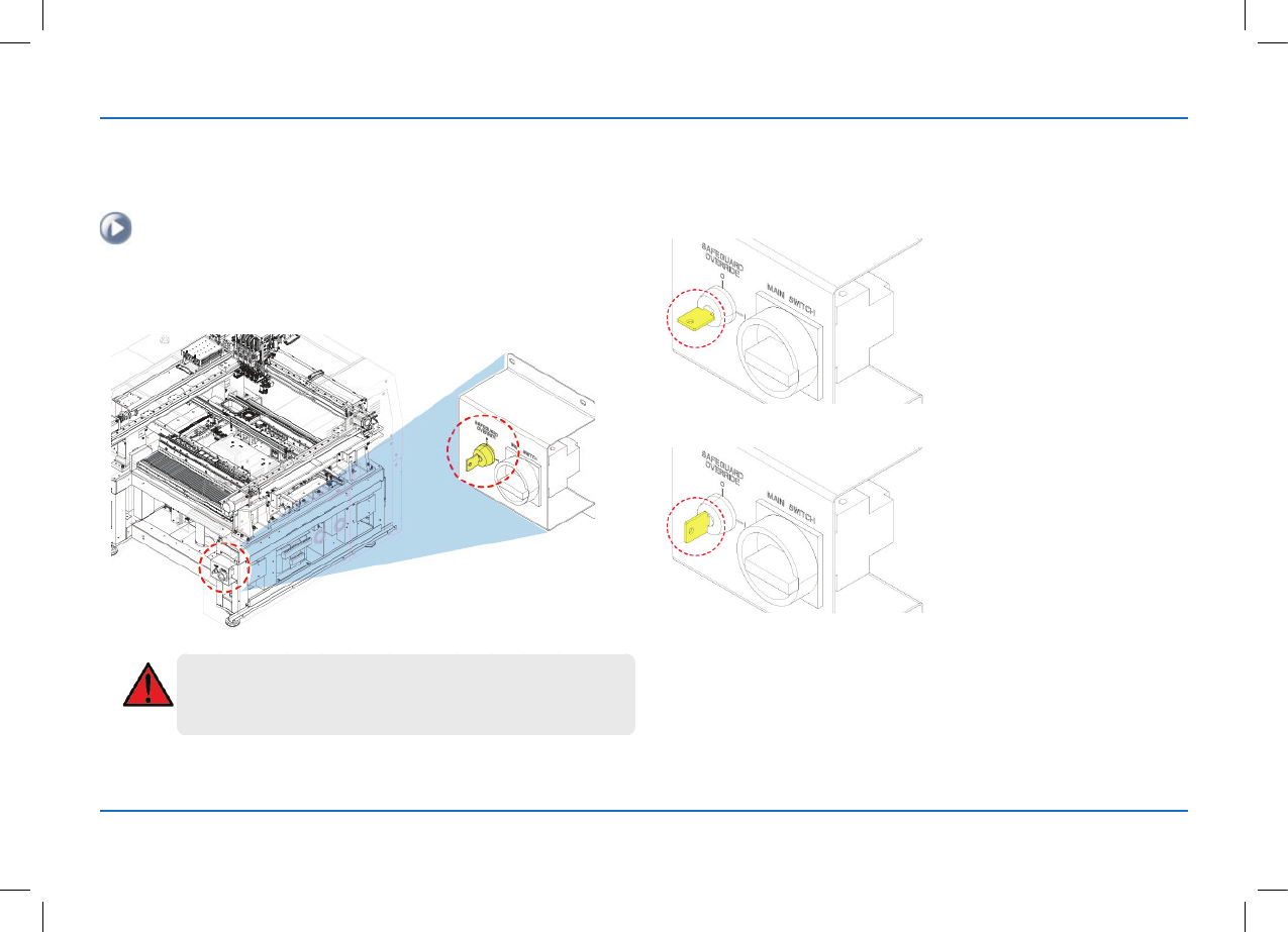 ※ 安全警告及注意事项 Safeguard override key 是 可以 人为操作门开关 ( Door Swi tch ) 不打开的钥 匙开 关 ( Ke y Sw it ch )。 只用于设备初 始 设置 或设备维护 。 危 险 Safeguard override key 开关必须由指定的管理负责人使用,运行设备时需要 格外谨慎。否则,如果工作人员在安全罩 OPEN 状态下接近驱动部,可能导致 死亡或严重伤害。 ㆍ 钥匙( K…