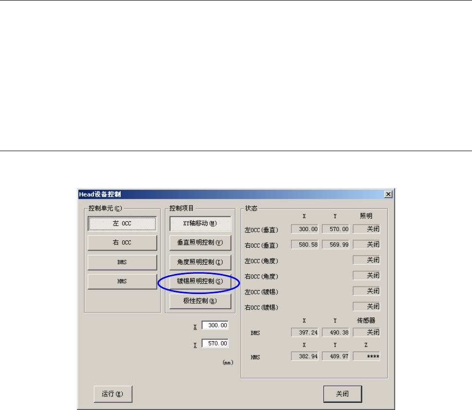 可通过手动控制的“Head 设备控制”-“镀锡照明控制”,操作本项功能各项照明的打开 / 关闭。
