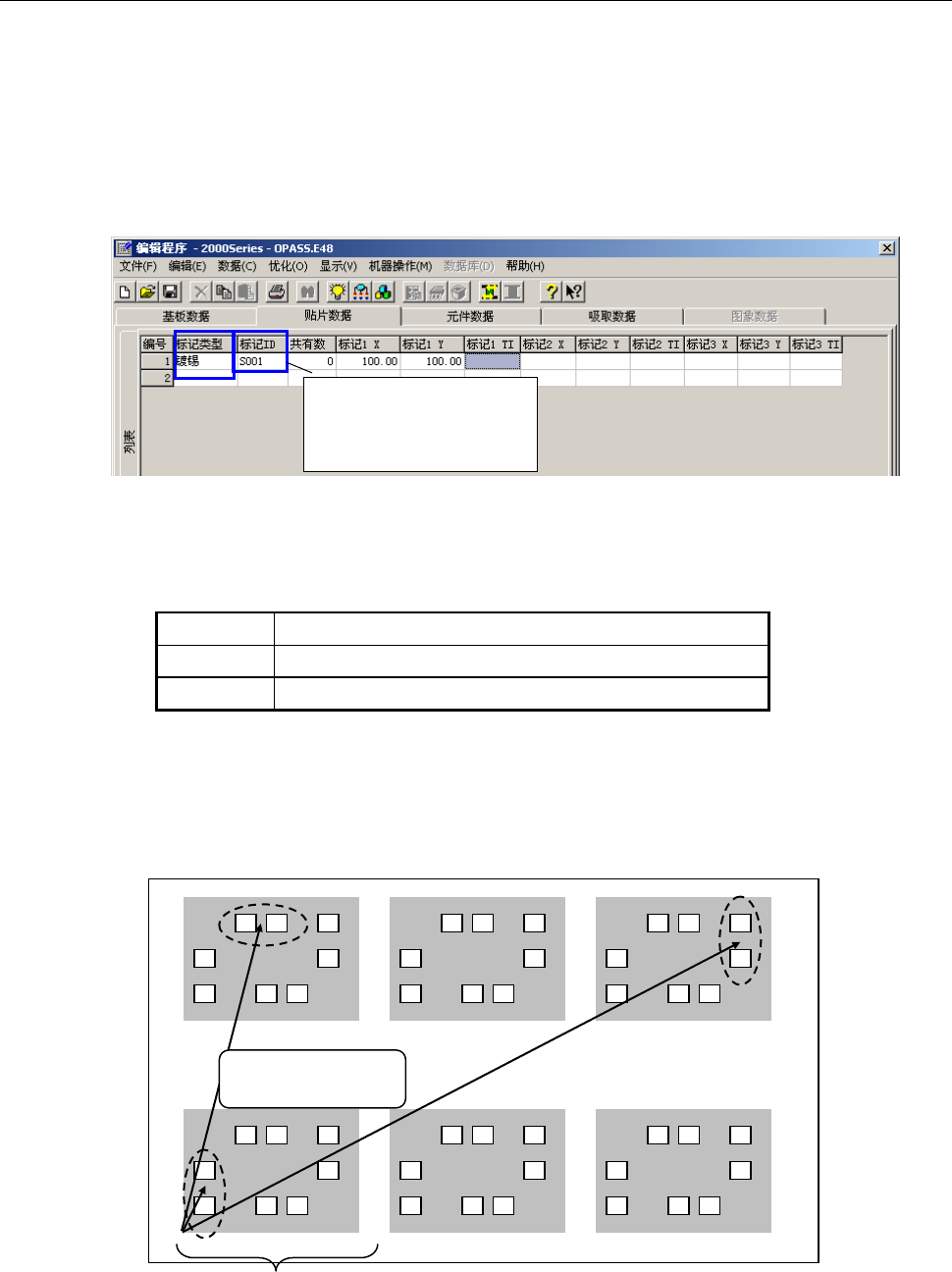 ③ 把上述①选择的贴片坐标,输入到标记坐标。