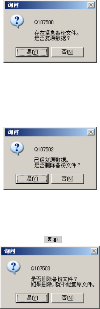 重新启动系统时,将检查停电时的备份文件,若文件存在,则会显示询问画面。