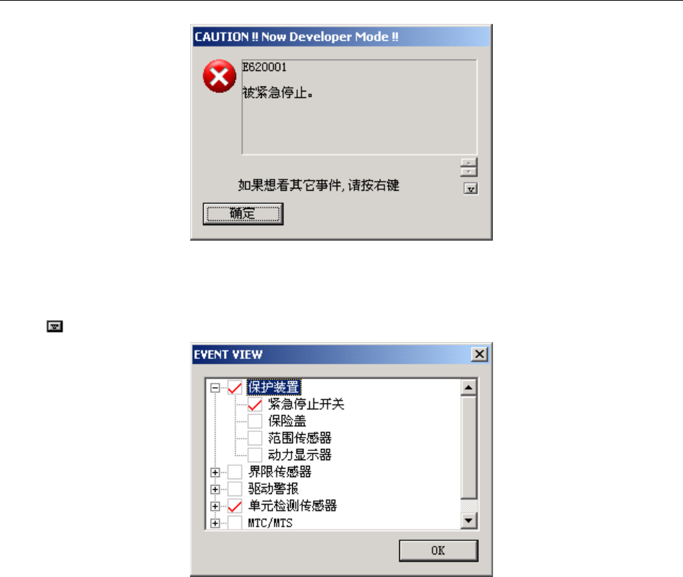 打开安全盖、按下紧急停止开关、或检测到各轴的伺服驱动的警报等时,会显示如下画面。