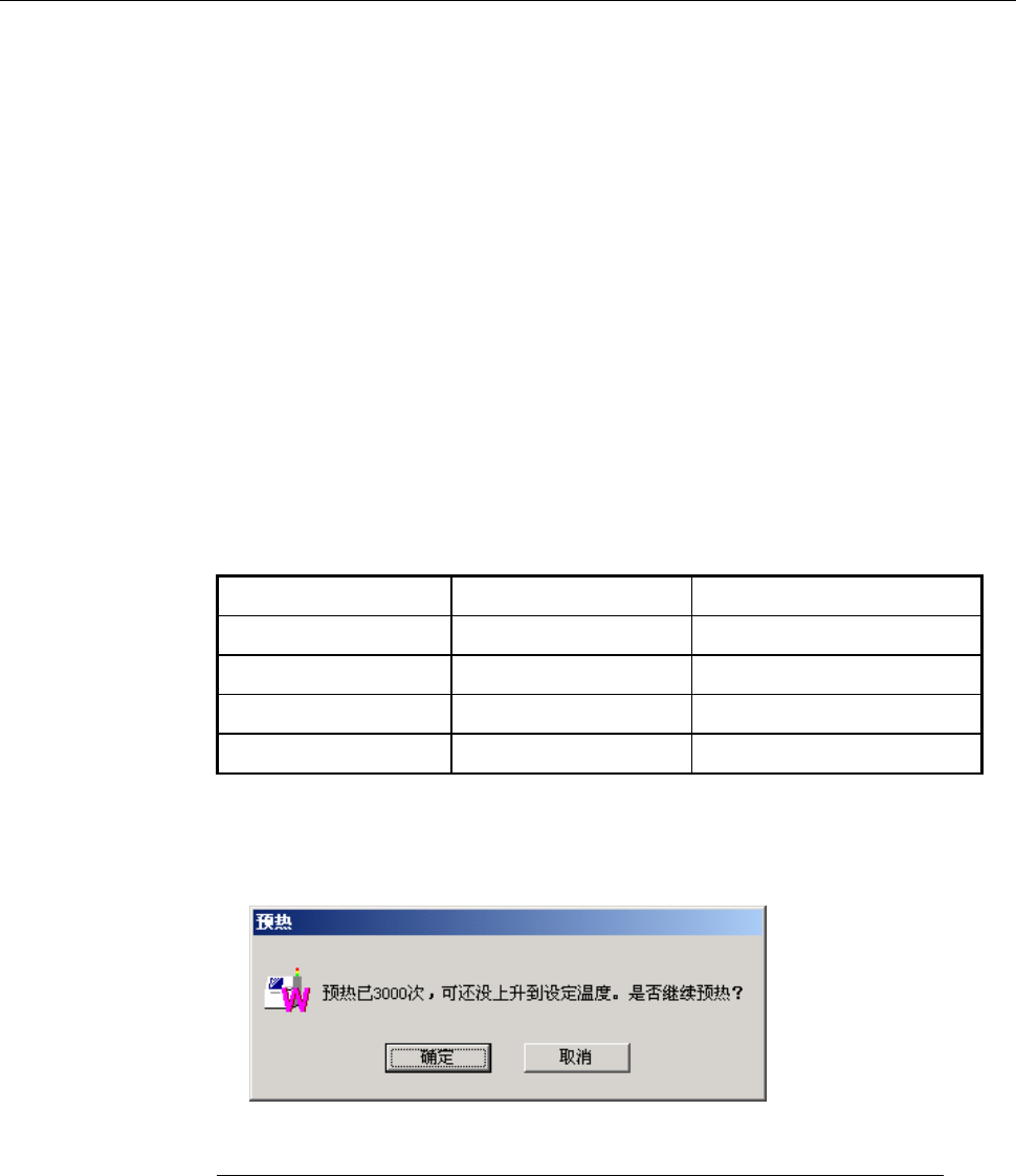 达不到所设置温度时,每进行 3000 次预热操作,会显示询问框,问是否要持续进行预
