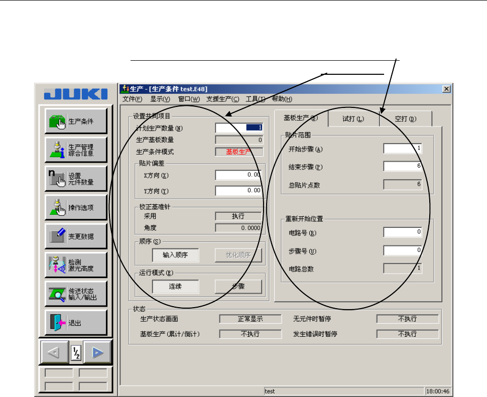 根据“基板生产”、“试打”、“空打”各种生产模式,分别设定各自的生产条件。