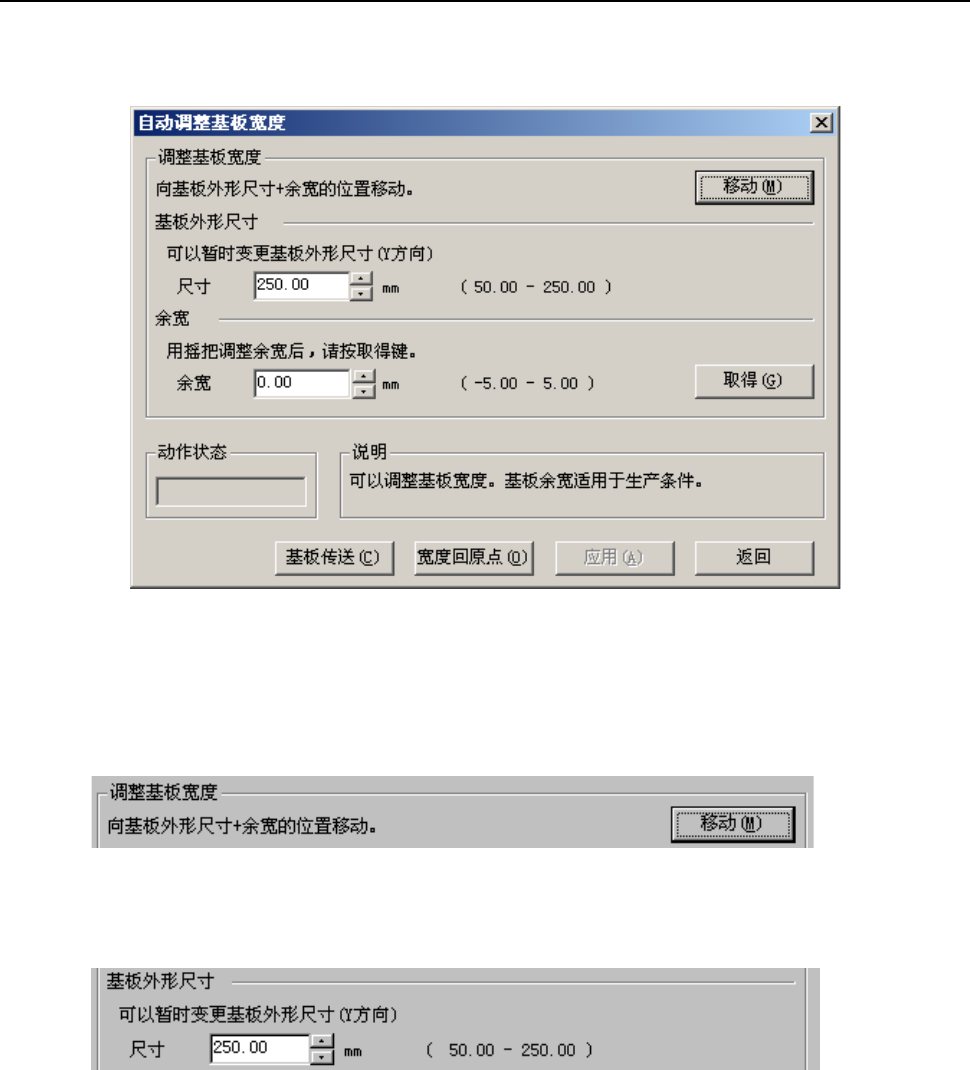 用当前的传送宽度减去基板外形尺寸的值作为余宽。用主机前面的手柄调整后,按下按钮。