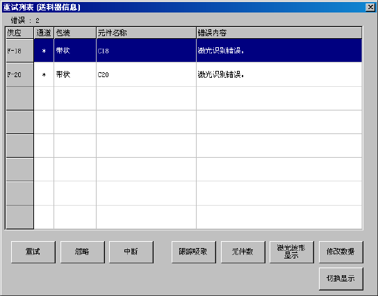 可对重试列表中显示的所有的“供应装置”或“元件”的吸取数据,进行吸取跟踪,校正其吸取