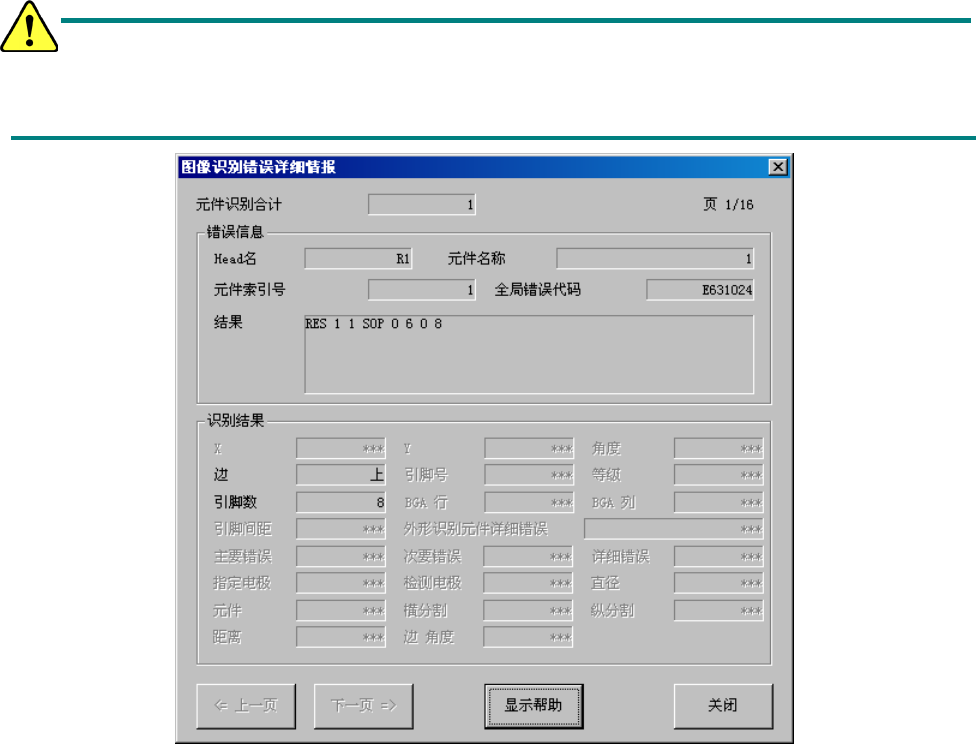 单击[取得图像识别信息]按钮,取得图像识别信息后,会显示如下的[图像识别错误详细情报]对