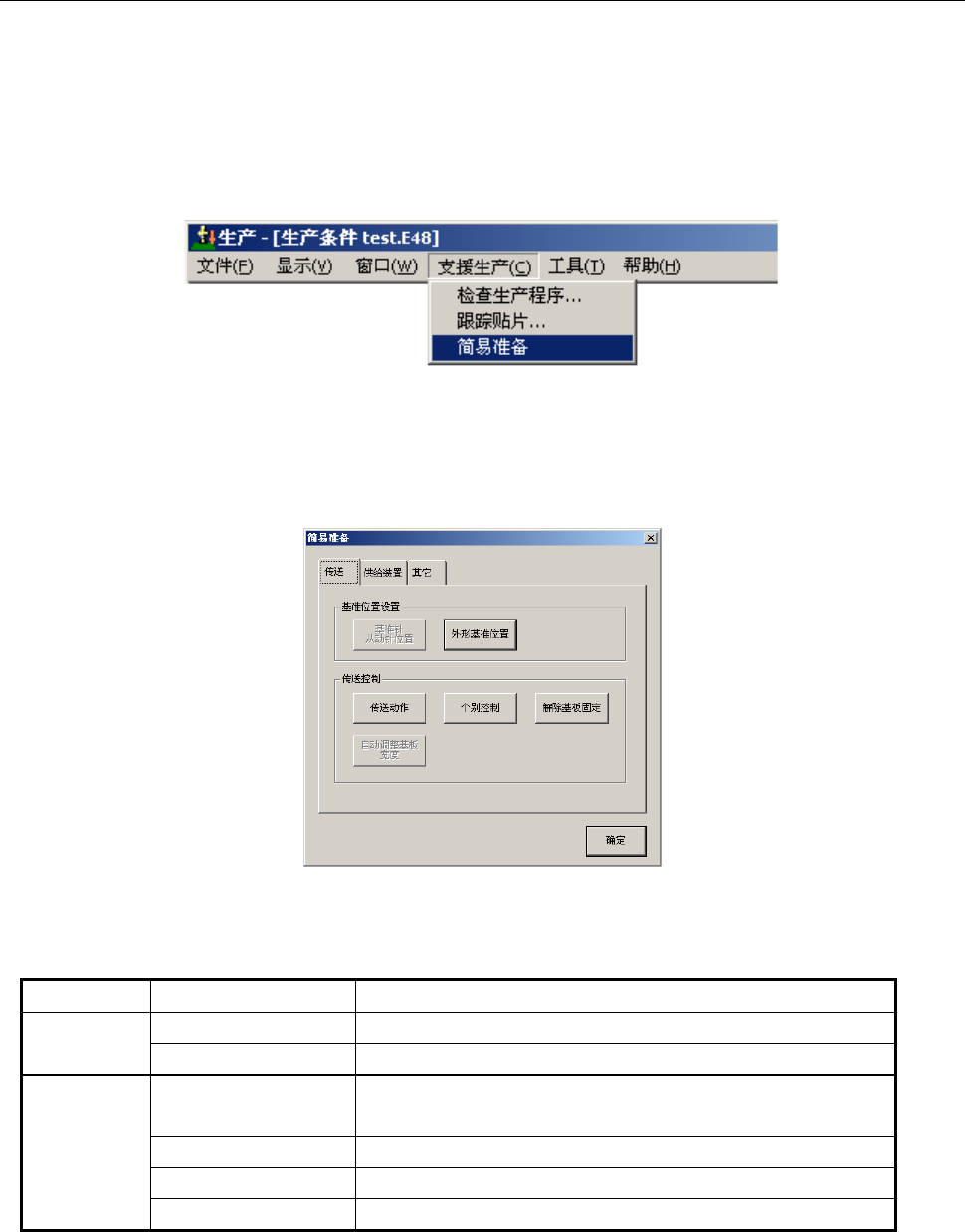 在菜单栏中选择“支援生产”-“简易准备”,可显示“简易准备”对话框。