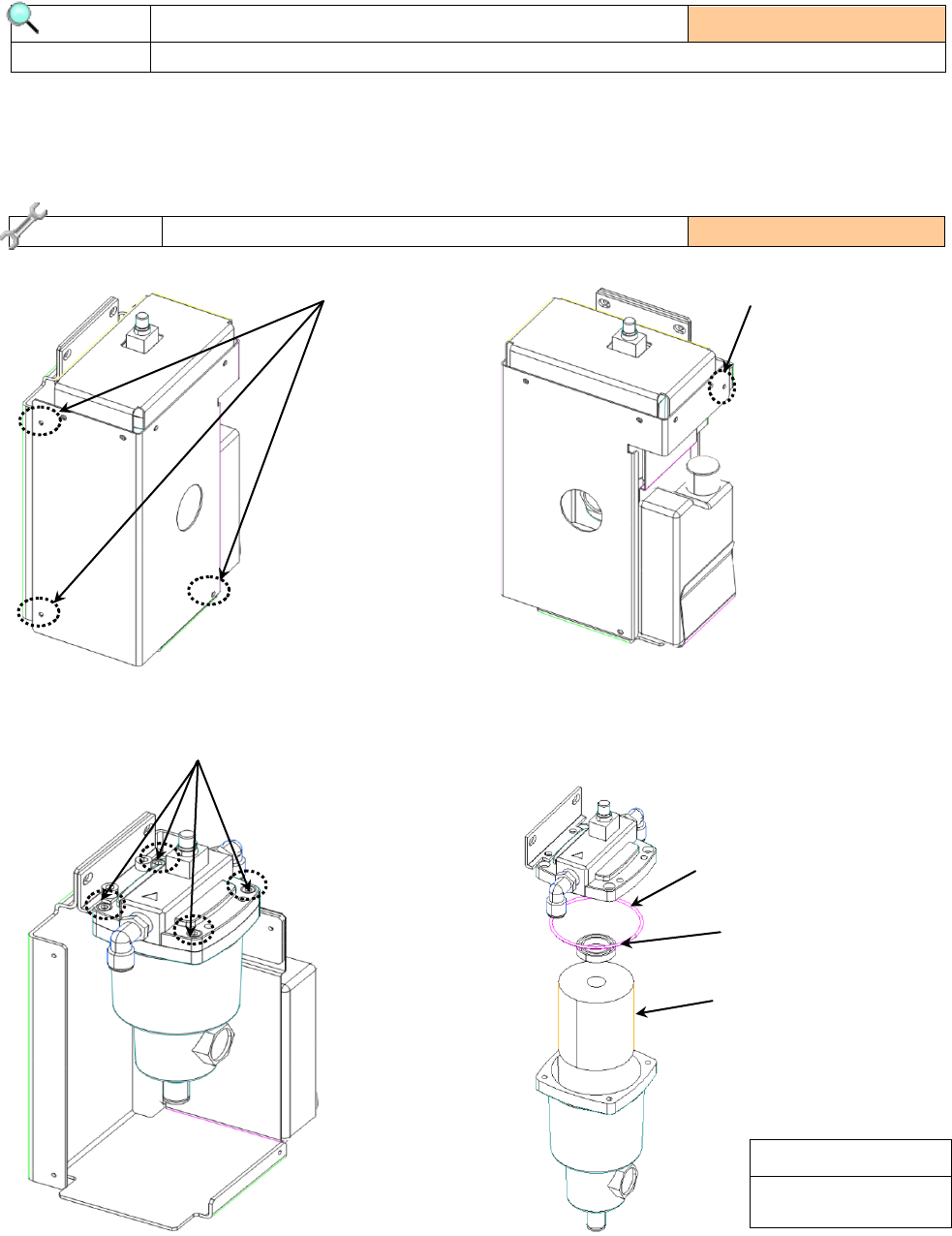 2) 卸下标示③的 4 根螺丝。 3) 更换新的过滤器元件、O 环、垫圈。