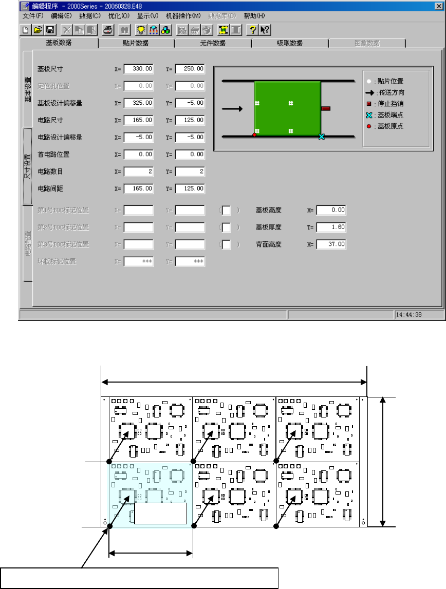 时,通过“定位孔位置”或“基板设计偏移量”指定基板的原点,通过“首电路位置”来指