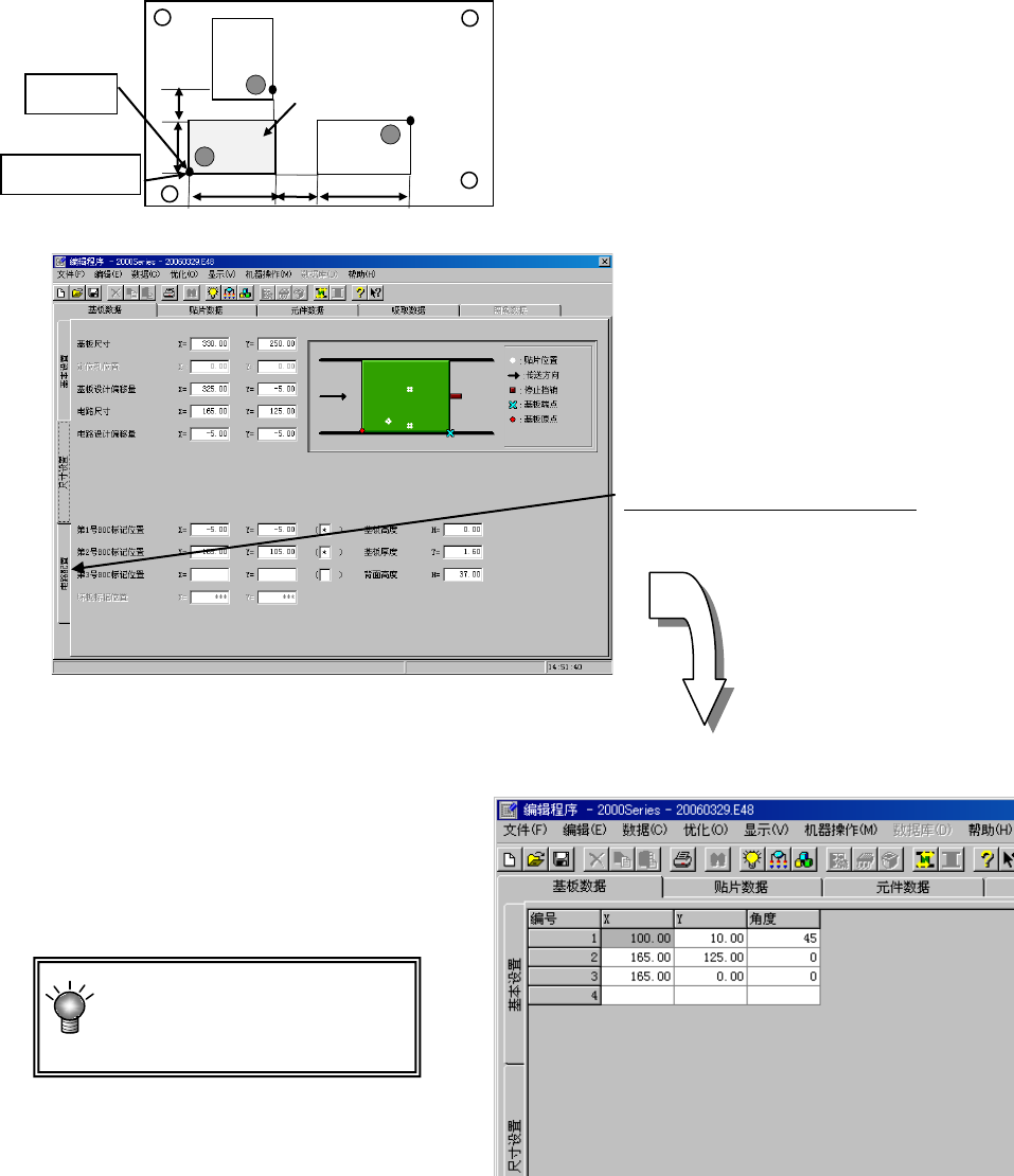 输入各电路的角度,以基板数据的“尺寸设置画面”中指定的电路原点,与贴片数据所示的贴片