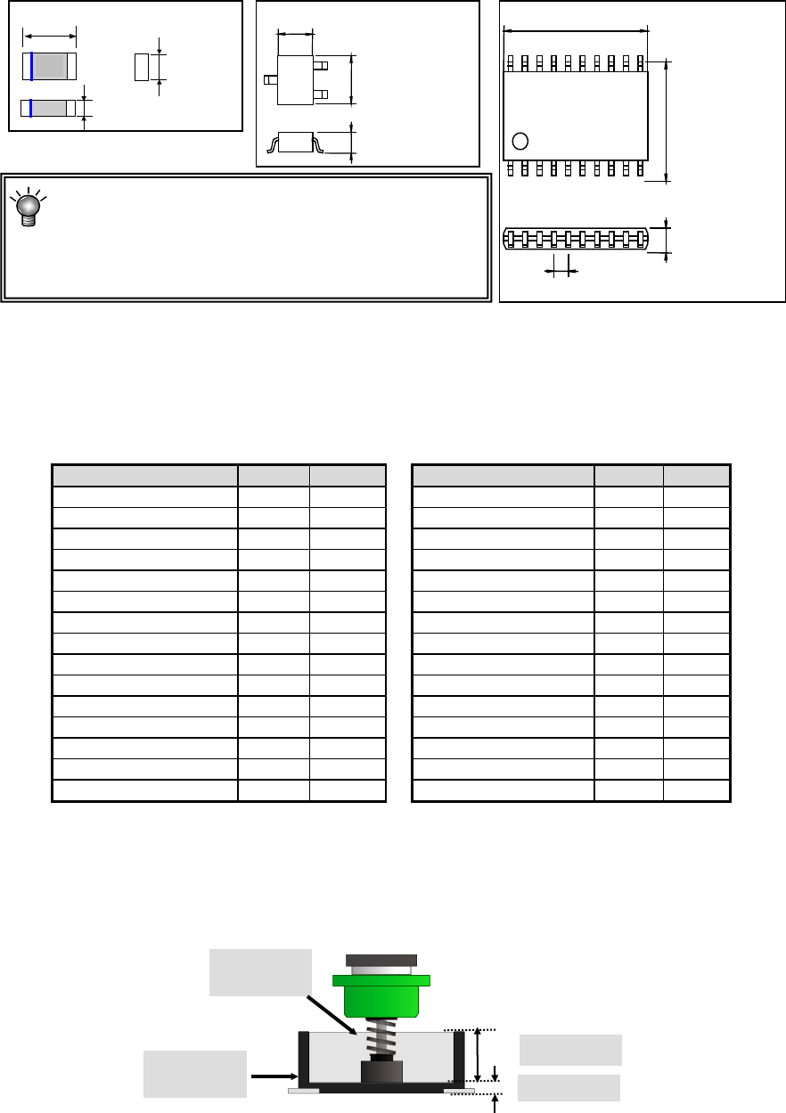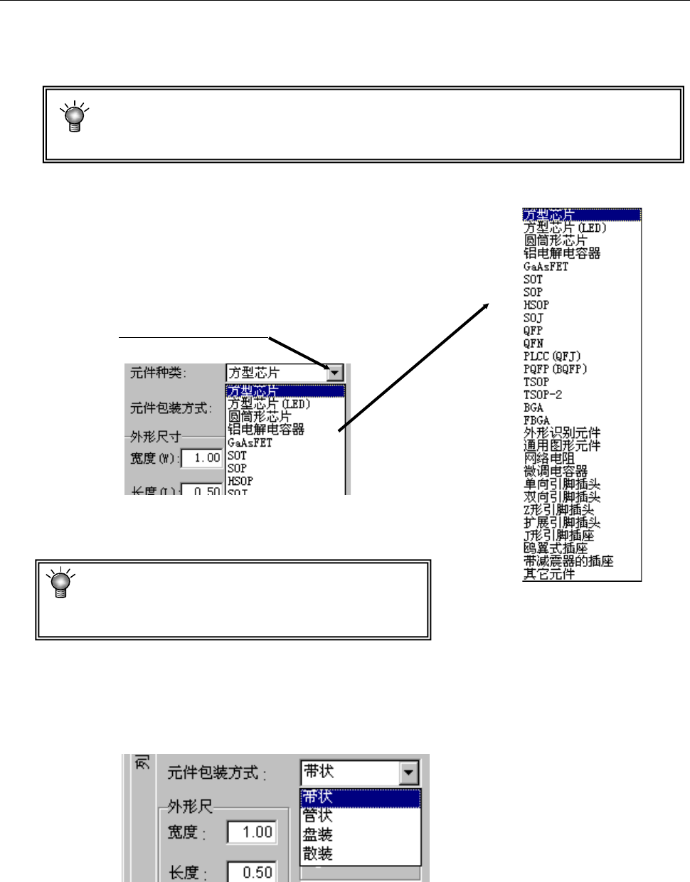 输入适用于各元件类型的元件外形尺寸。