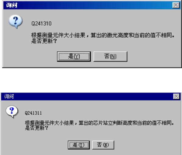 根据尺寸计算出的激光高度或芯片站立判定高度与原来的值不同时,显示如下询问。