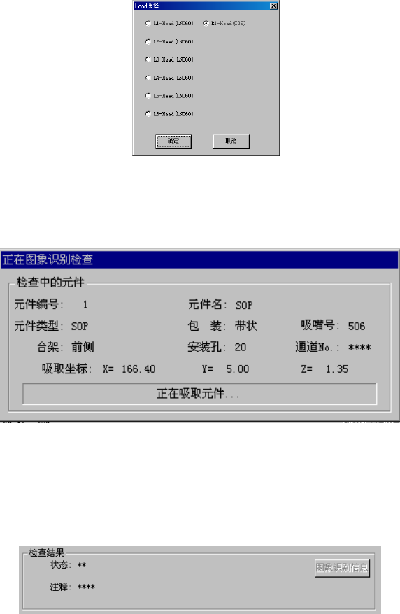 在图像识别检查中会显示如下画面。显示进行检查的元件内容/吸取位置,